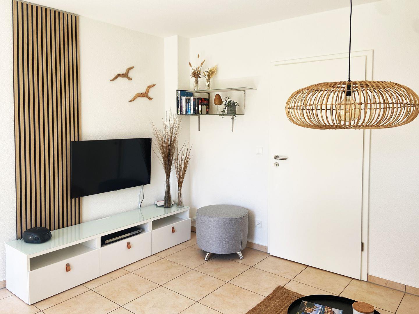 Der Wohnbereich verfügt über eine gemütliche Sitzecke mit Smart-TV (Netflix-Abonnement vorhanden), DVD-Player und Radio.
