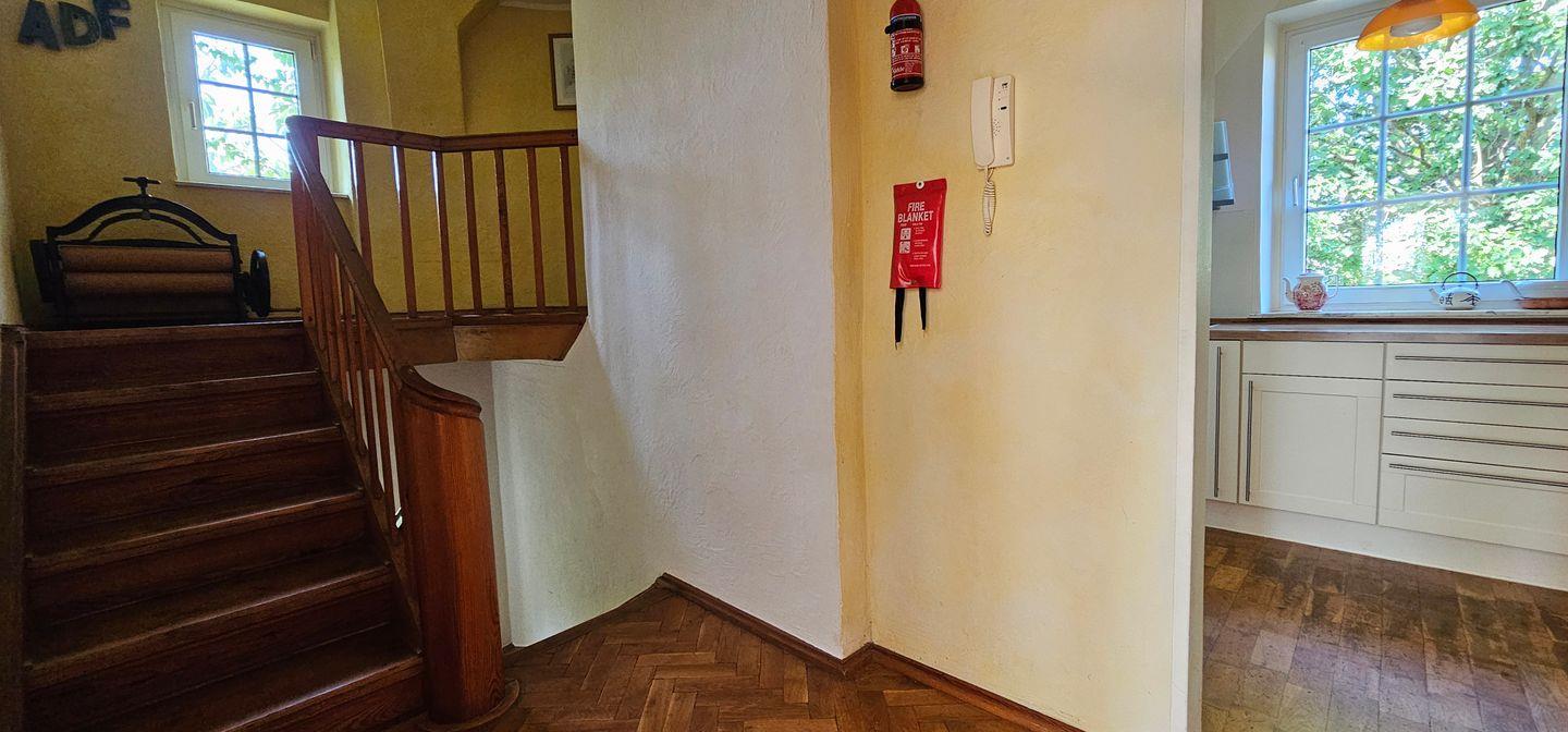 • Offene, voll ausgestattete Küche im 1. Obergeschoss mit Herd, Backofen, Kühlschrank, Mikrowelle, Geschirrspülmaschine, Kaffeemaschine,