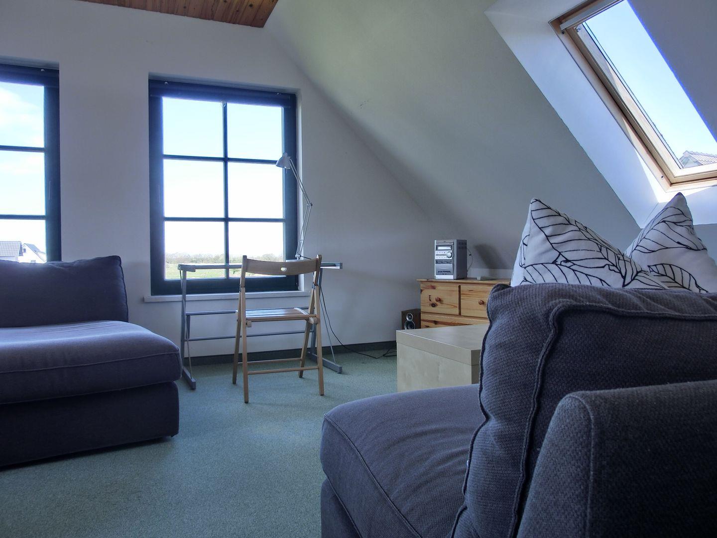 • großes und freundlich eingerichtetes Wohn- /Schlafzimmer im oberen Bereich des Hauses mit Sat-TV, Radio, CD-Spieler und herrlichen