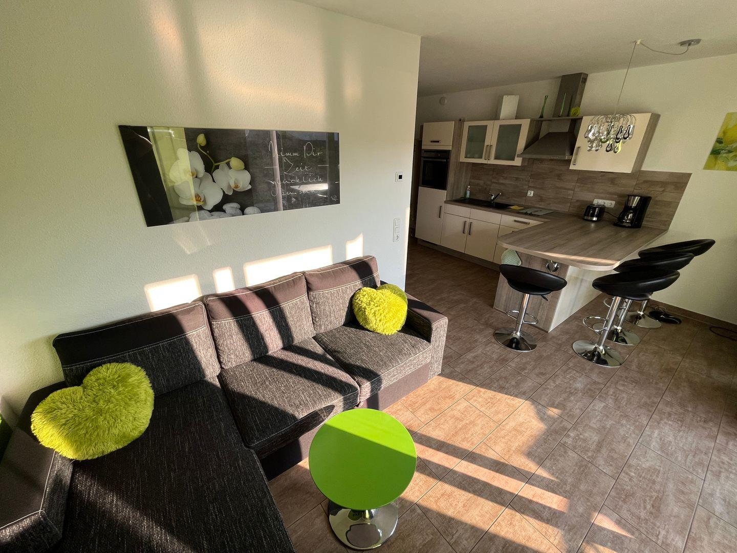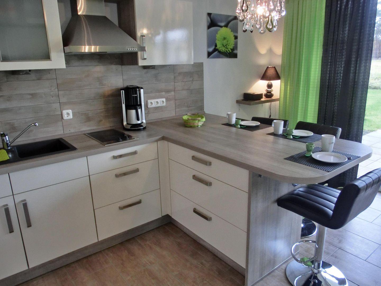 - Küche inkl. Herd mit Ceranfeld und Backofen, Kühlschrank mit Gefrierteil, Kaffeemaschine, Toaster, Wasserkocher, Eierkocher, Geschirr, Besteck und Gläser sind ausreichend vorhanden