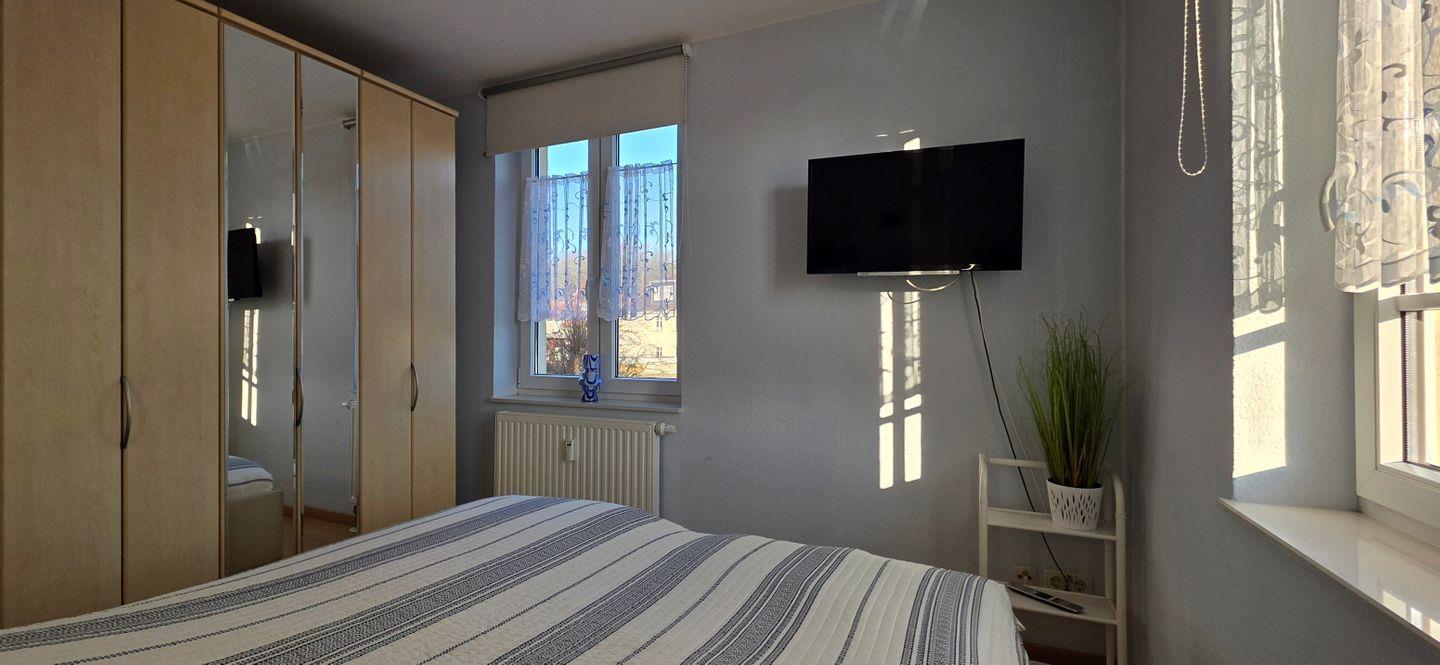 - Die Ferienwohnung verfügt über zwei Schlafzimmer. In dem ersten Schlafzimmer befindet sich ein Doppelbett (200 cm x 180 cm) und ein zweiter TV.