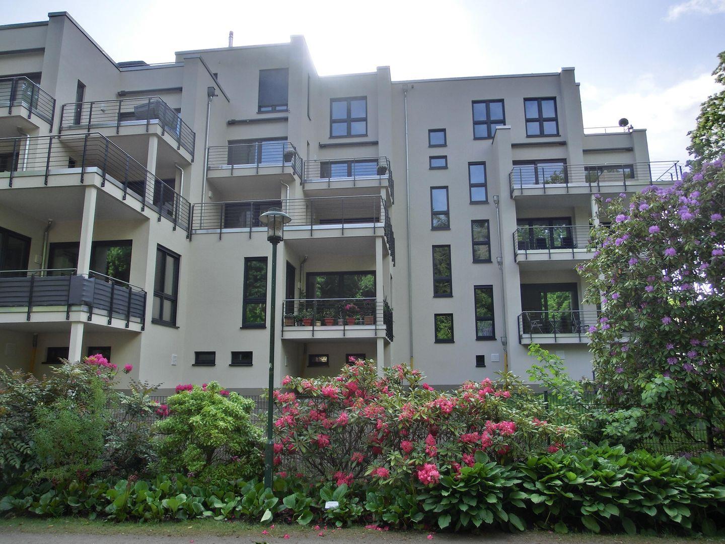 - große Dachterrasse mit Blick auf den schönen Rhododendronpark mit Strandkorb, Terrassenmöbeln und Grill