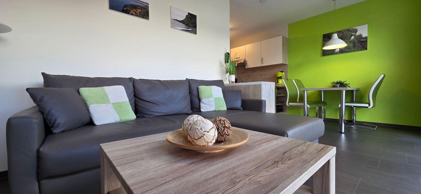 - Wohnbereich mit LED-Flachbild -TV, Radio, CD- und DVD-Player, Internetanschluss über W-LAN