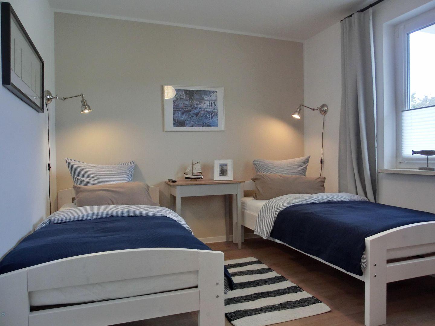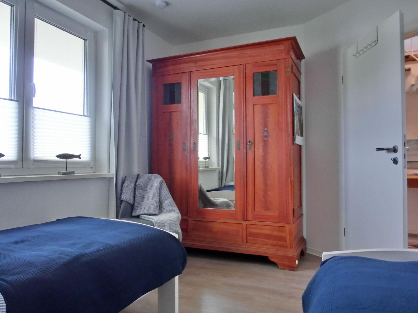 - 1 Schlafzimmer mit 2 Einzelbetten (90 cm x 200 cm) und zusätzlichem Sat-TV mit DVD Spieler