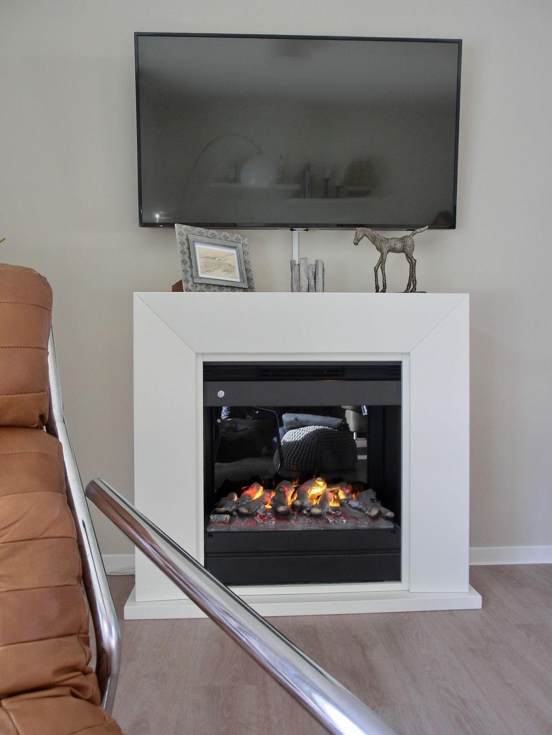 - die Ferienwohnung verfügt über einen großen Wohnbereich mit Elektrokamin (Deko) und Sat-TV, Radio, CD- und DVD-und Blu Ray-Spieler