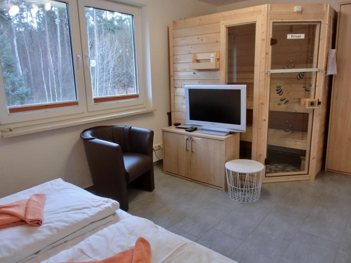 - 1 Schlafzimmer mit einem Doppelbett (180 cm x 200 cm) und TV / Sauna