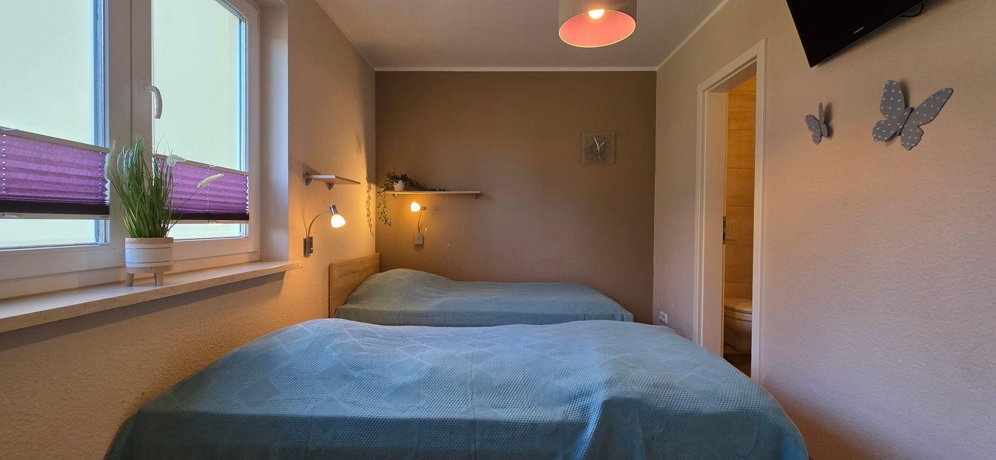 1 Schlafraum mit 2 Einzelbetten, Sat-TV und eigenen Duschbad