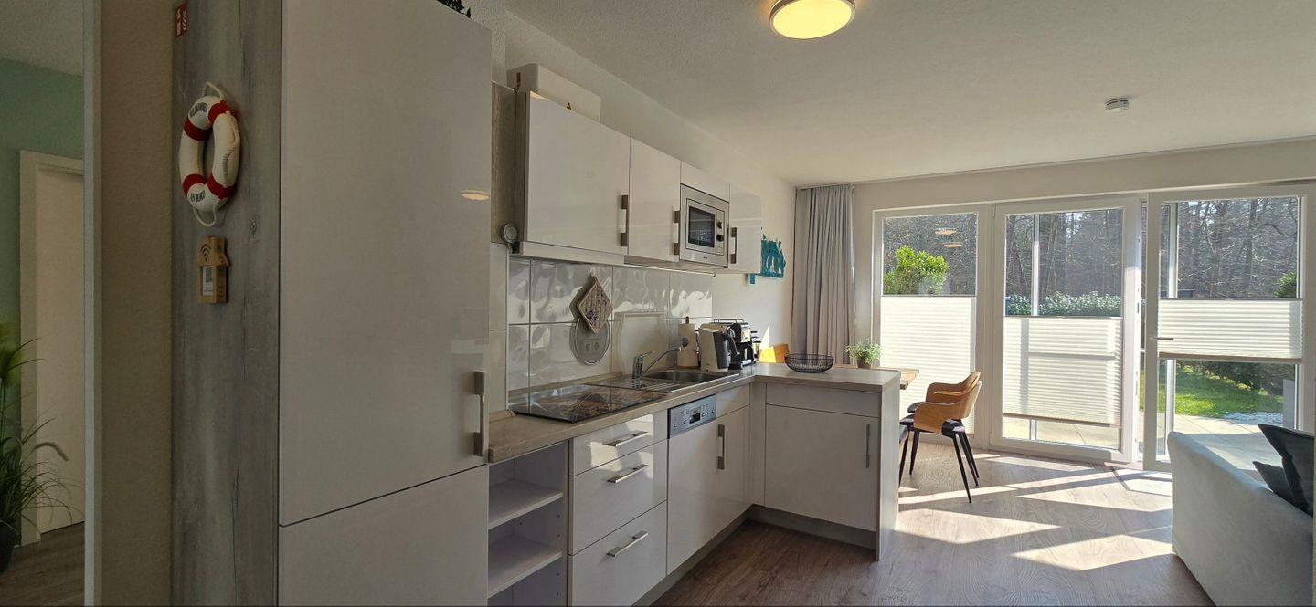 - offene Küche inkl. Ceranfeld, Geschirrspülmaschine, Kühlschrank mit Gefrierfach, Kaffeemaschine, Nespresso Kapselmaschine, Mikrowelle mit Grillfunktion, Toaster, Wasserkocher, Geschirr, Besteck und Gläser sind ausreichend vorhanden