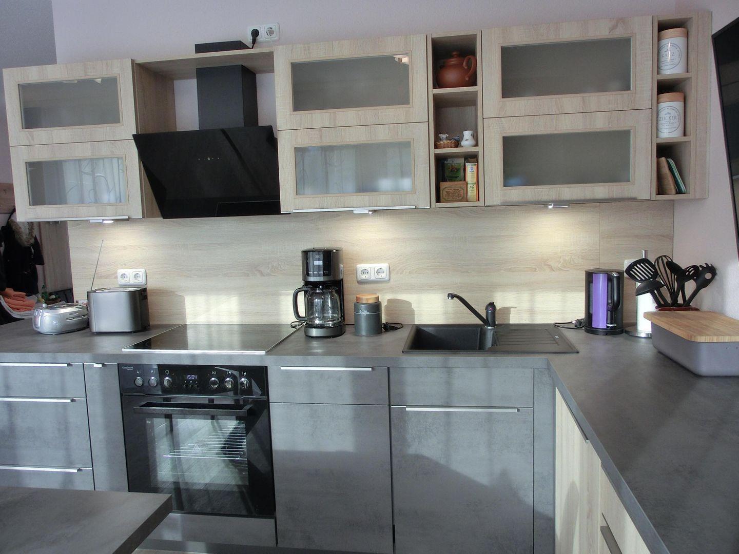 - offene Küche inkl. Herd mit Backofen, Kühlschrank mit Gefrierteil, Geschirrspüler, Mikrowelle, Kaffeemaschine, Toaster, Wasserkocher, Geschirr, Besteck und Gläser sind ausreichend vorhanden