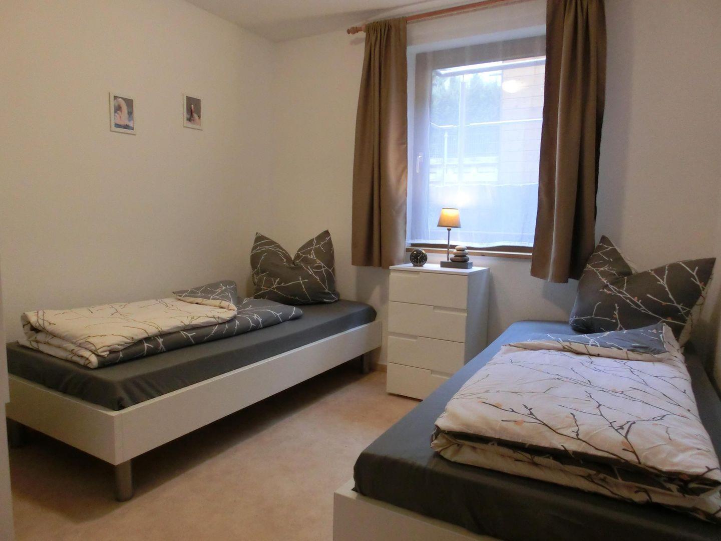 - Schlafzimmer mit zwei Einzelbetten (90 cm x 200 cm), INKLUSIVE Bettwäsche, es ist auch genügend Platz um ein Babyreisebett hinzustellen
