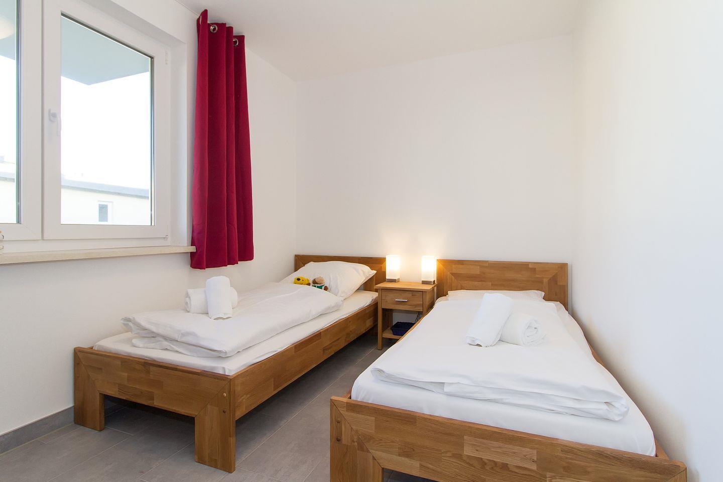 - 1 Schlafzimmer mit 2 Einzelbetten (je 90 cm x 200 cm)