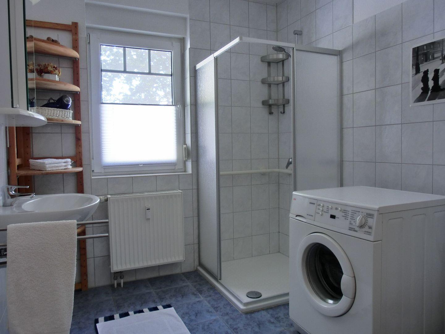 • Tageslichtbad mit ebenerdiger Dusche, WC, Fön