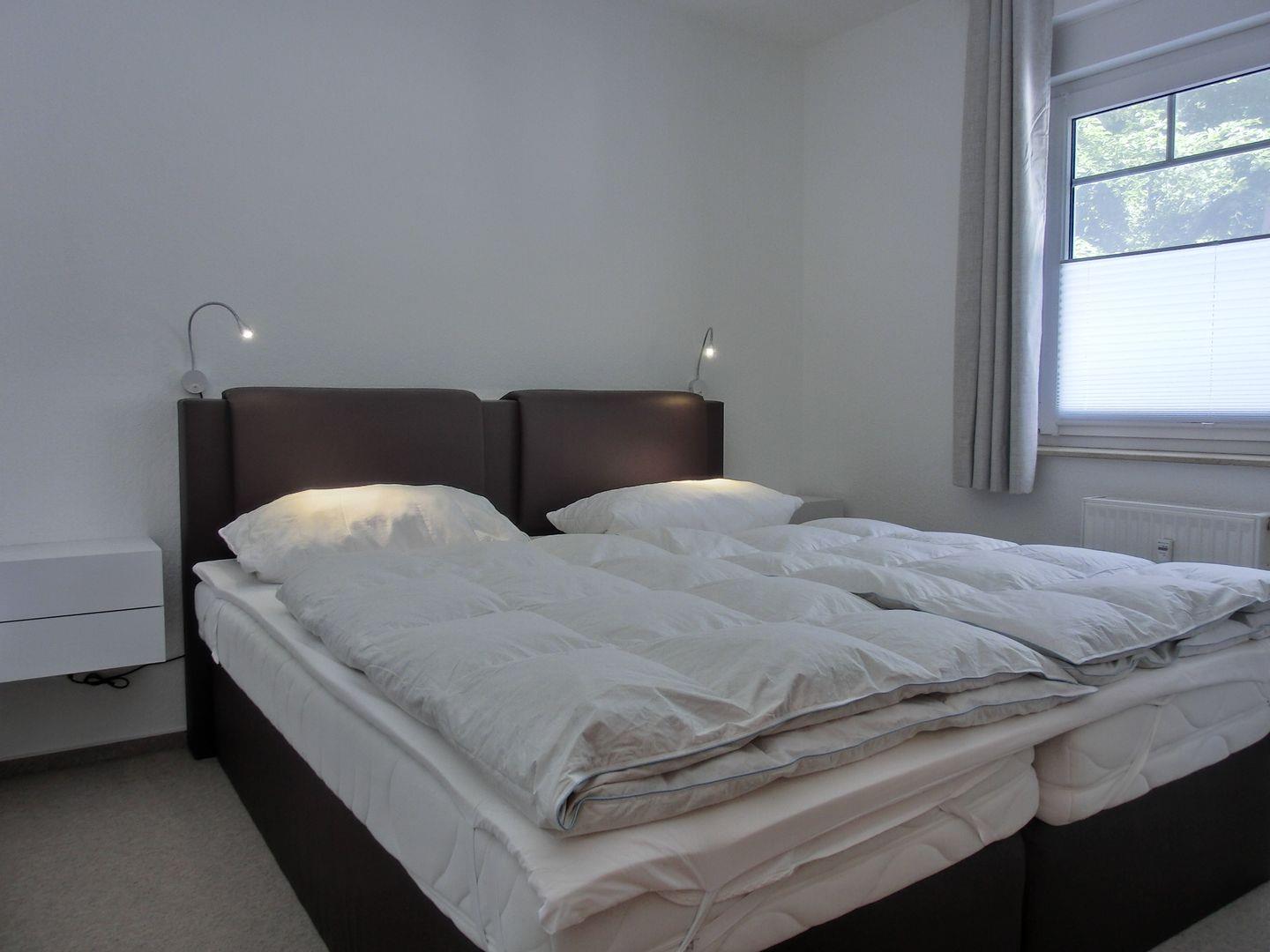 • Schlafzimmer mit Doppelbett (180 cm × 200 cm, geteilte Matratze)