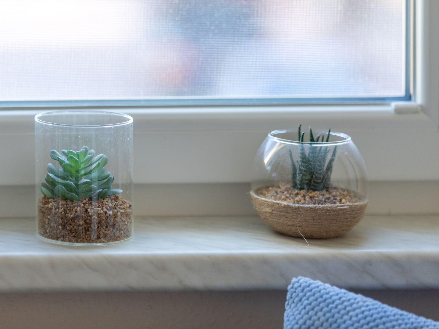 - Tageslichtbad mit ebenerdiger Dusche, genügend Ablagefläche und Fön