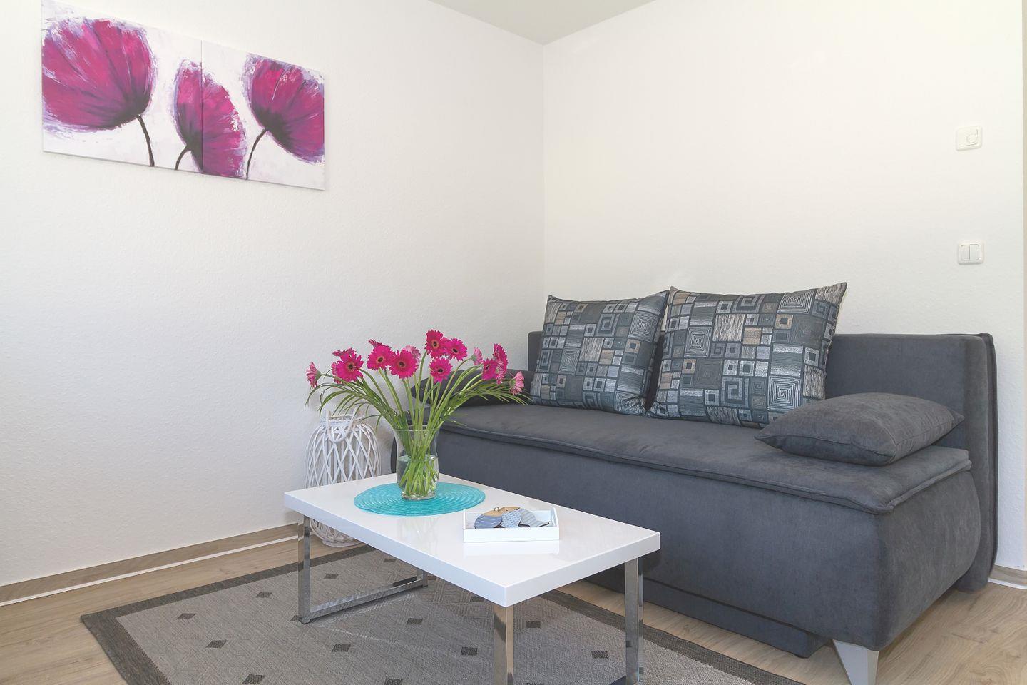 - Wohnbereich mit Sitzecke inkl. SAT-TV und Radio mit CD-Player