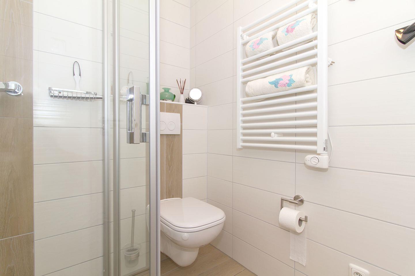 - Tageslichtbad mit WC, ebenerdiger Dusche, Fön, Handtuchheizkörper, Kosmetikspiegel und genügend Ablagefläche