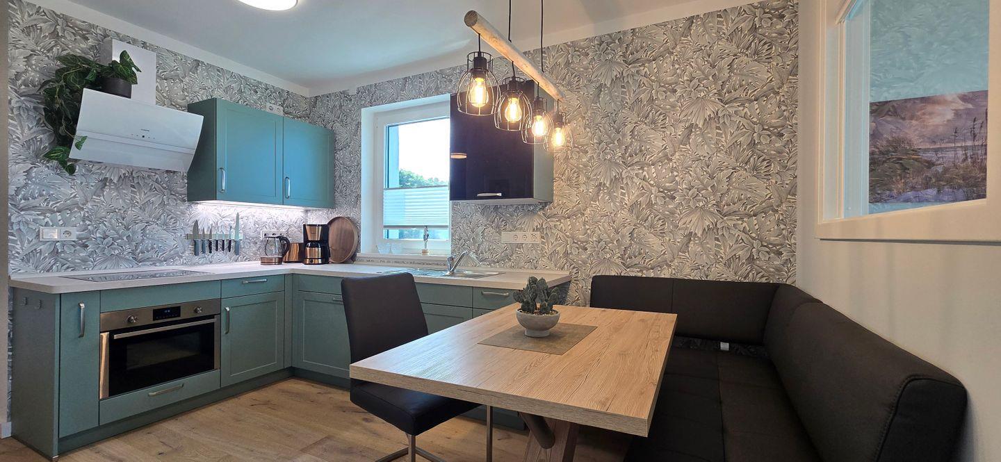 • Voll ausgestattete Küche mit Essbereich, Cerankochfeld, Mikrowelle, Geschirrspüler, Kühlschrank mit Gefrierfach, Kaffeemaschine und