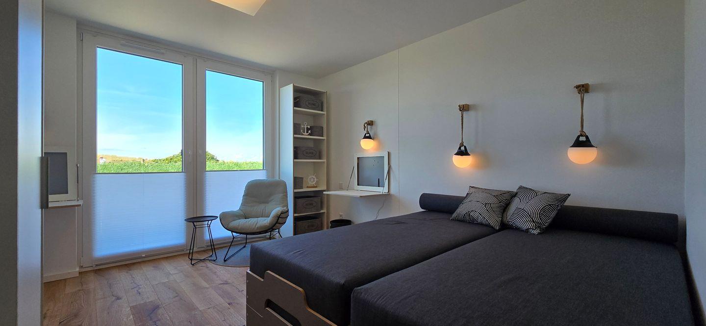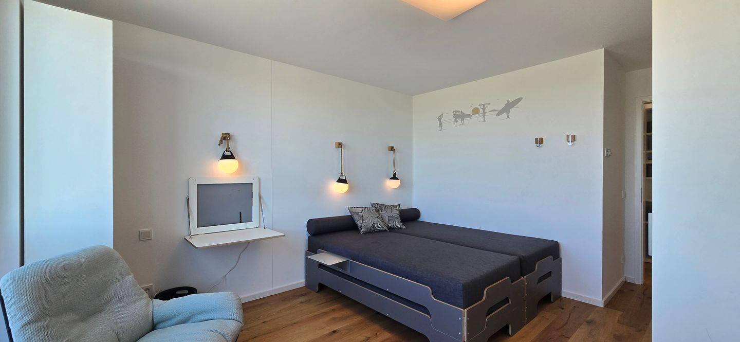• Separates Schlafzimmer mit vier Einzelbetten (a´90 cm x 200 cm, geteilte Matratze stapelbar)
