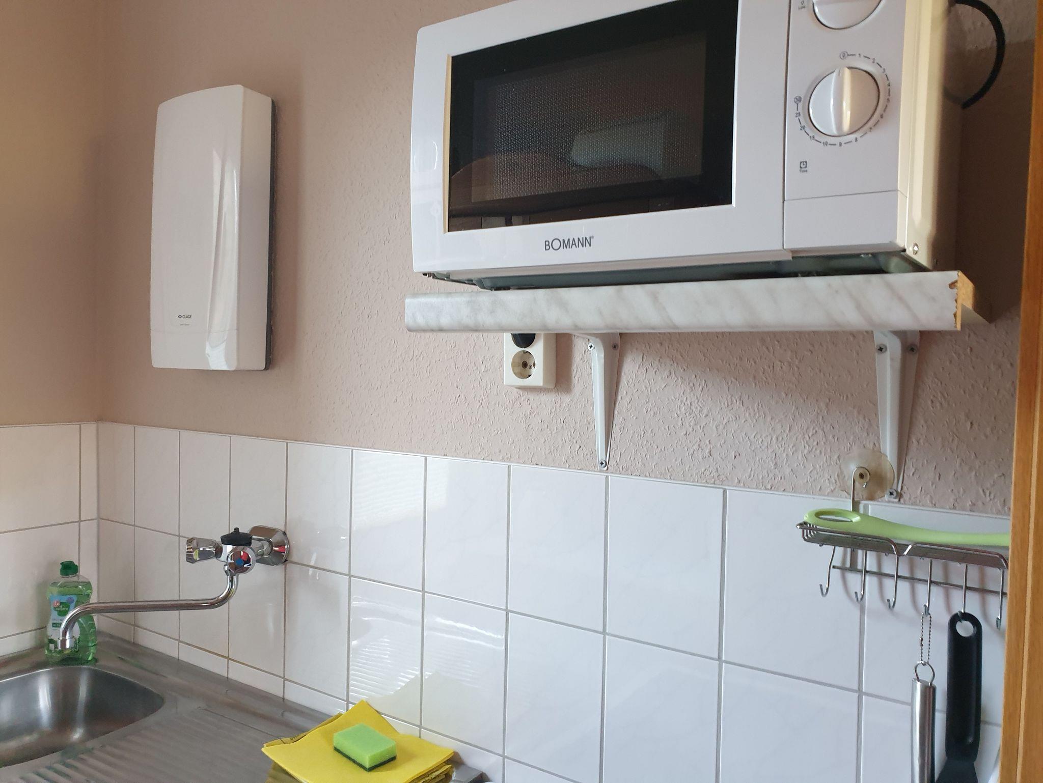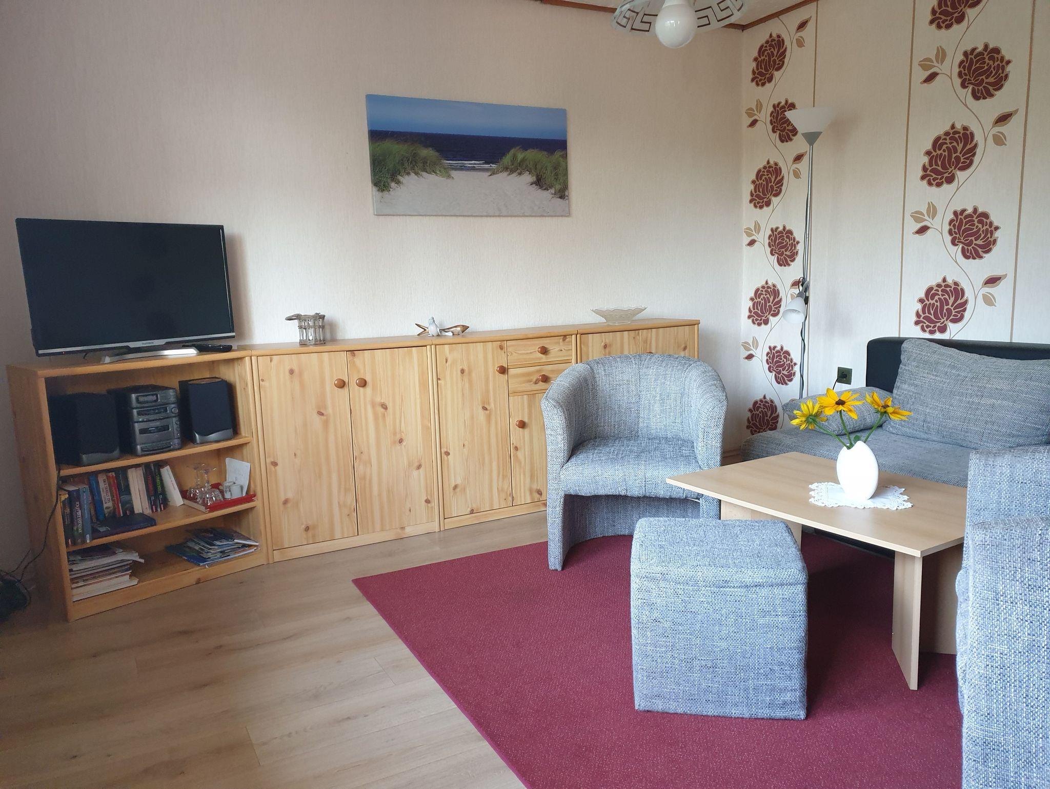 Unser Ferienobjekt besteht aus einem Wohnraum mit Kamin und gemütlicher Sitzecke, einem Schlafraum für 3 Personen (zzgl. 1 Aufbettung für 1 Person) sowie eine komplett ausgestattete Küche ( E- Herd, Kaffeemaschine, Toaster, Wasserkocher), Bad mit DU/WC.