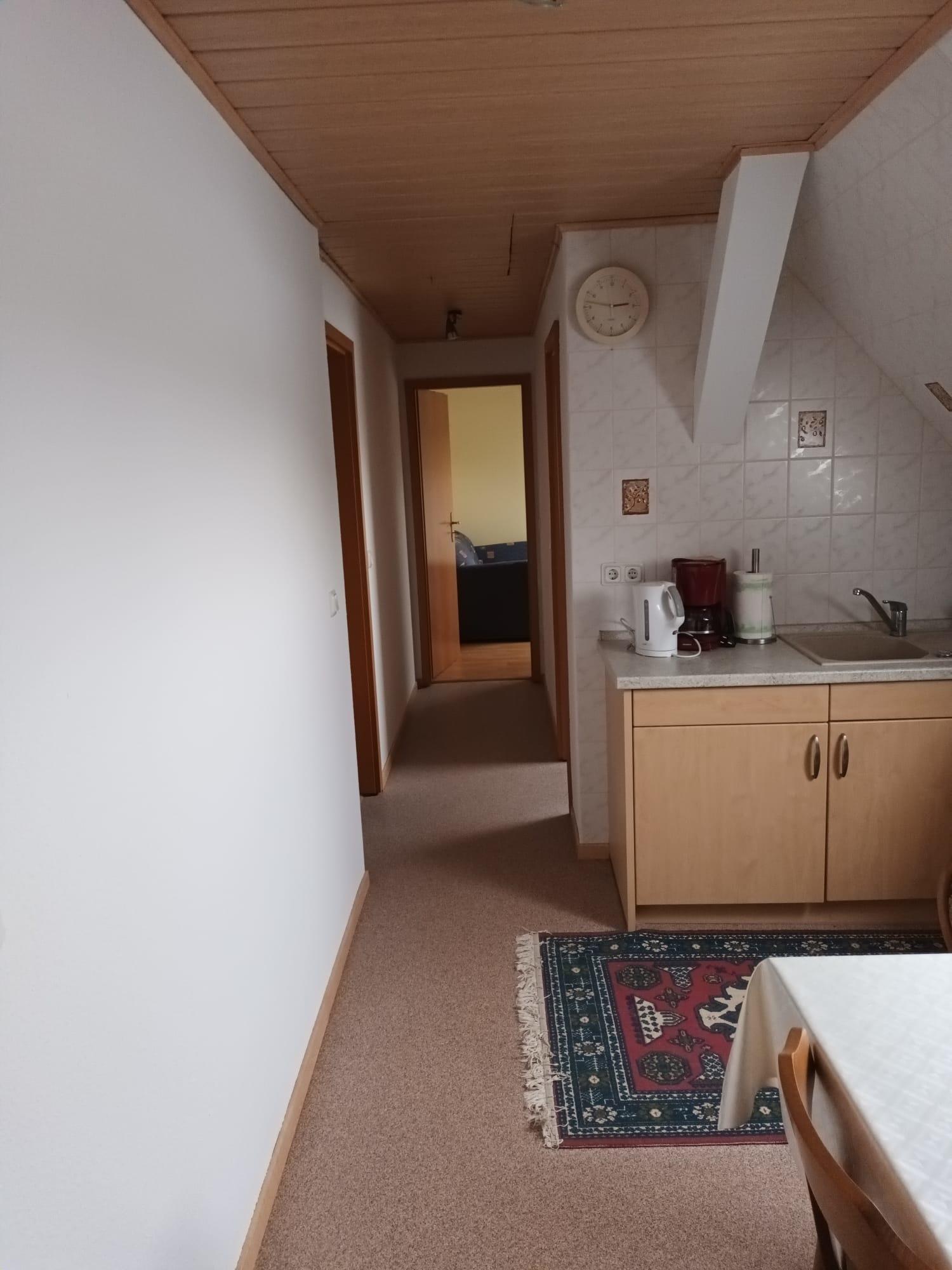 Die Dachgeschoßwohnung ist überwiegend für Radfahrer, Monteure, Dienstreisende oder Familienbesuche gedacht. Hier finden 3, auf der Schlafcouch im Wohnzimmer sogar 4 Personen einen Schlafplatz.
