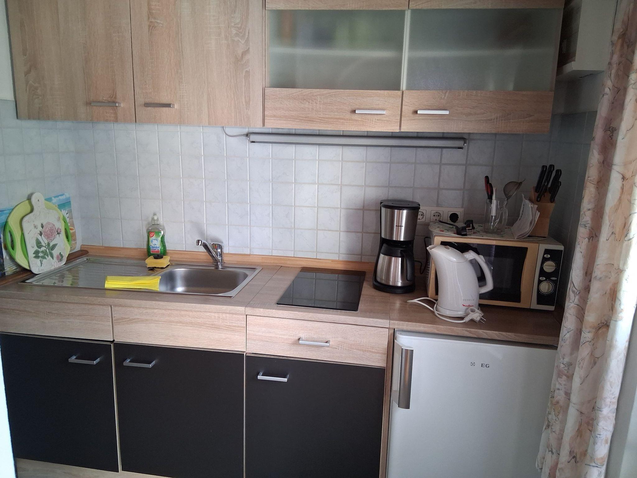 Für Komfort im Urlaub sind Sat-TV und WLAN vorhanden. Eine Mikrowelle erleichtert die Zubereitung kleiner Gerichte und Snacks. Bettwäsche und Handtücher sind vorhanden.