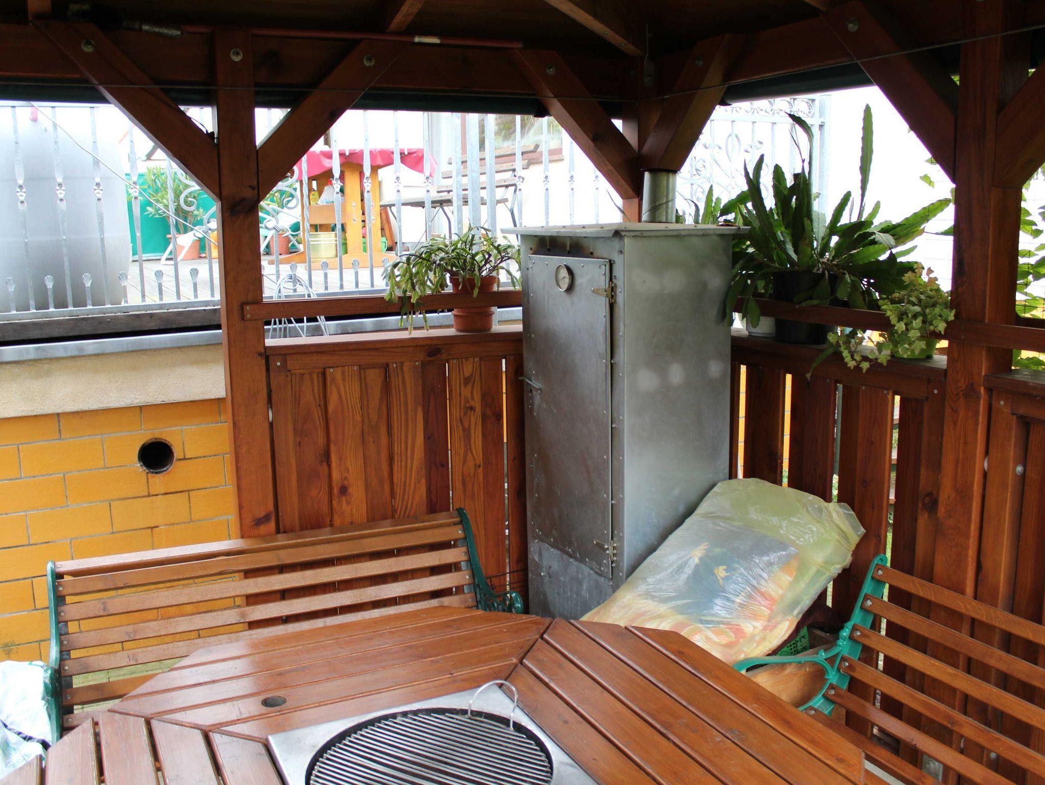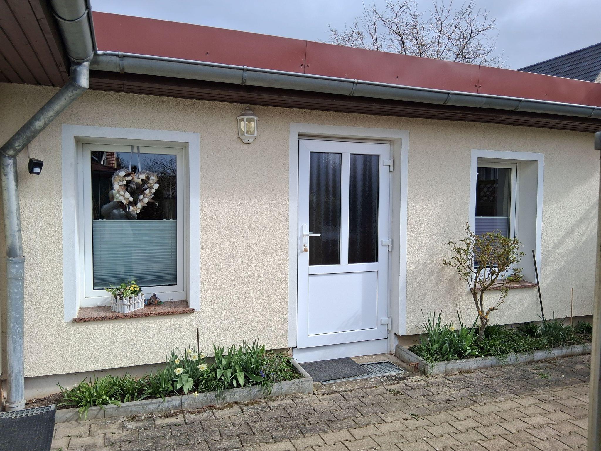 Vor dem Bungalow steht Ihnen eine Terrasse mit Sitzmöglichkeiten zur Verfügung - schön für eine ruhige Pause an der frischen Luft. Auf dem Grundstück befinden sich außerdem ein weiterer Bungalow sowie das Wohnhaus des Vermieters.