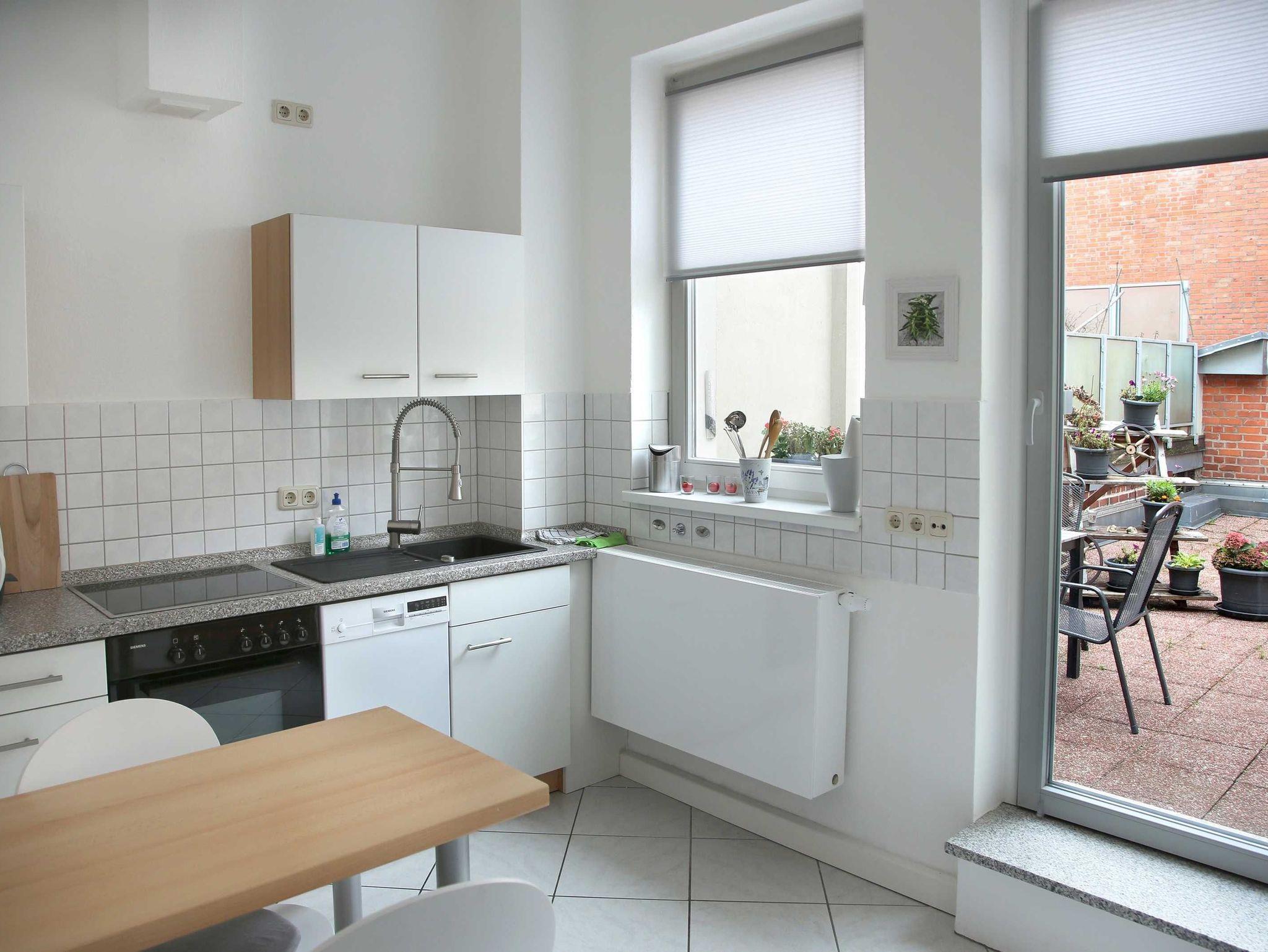 Das ca. 70 qm große Appartement befindet sich im 1. OG des Wohnhauses und wurde im Sommer 2016 renoviert und neu eingerichtet. Im Schlafzimmer befindet sich ein Doppelbett, ein Einzelbett (plus Kleinkinderbett auf Anfrage), im Wohnzimmer ein Schlafsofa. Das Badezimmer ist modern und hell mit Dusche. Eine Waschmaschine ist auch vorhanden. Bei der Küche handelt es sich um eine vollwertige Einbauküche (Kühlschrank, Herd, Backofen, Geschirrspüler, Kaffeemaschine, Wasserkocher, Mikrowelle) mit einem unmittelbaren Zugang zur Terrasse im Innenhof. Zusätzlich gibt es kostenfreies WLAN und TV.