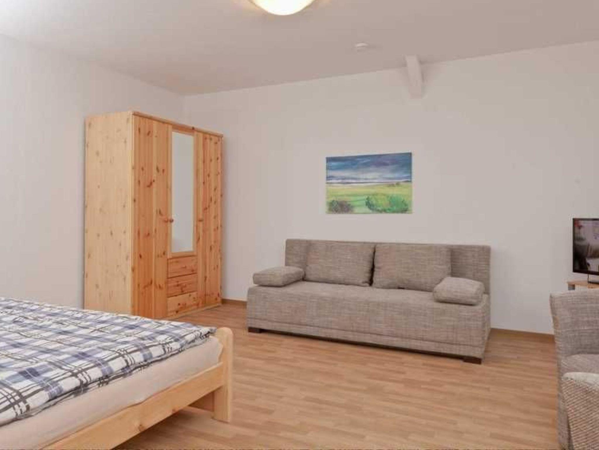 Die Gästewohnung bietet Platz für 4 Personen und ist wie folgt aufgeteilt: ein Wohnzimmer mit Küchenzeile, Couch und TV, ein Schlafzimmer mit Doppelbett und Schlafsofa für 2 Personen und ein Bad mit Dusche/WC.