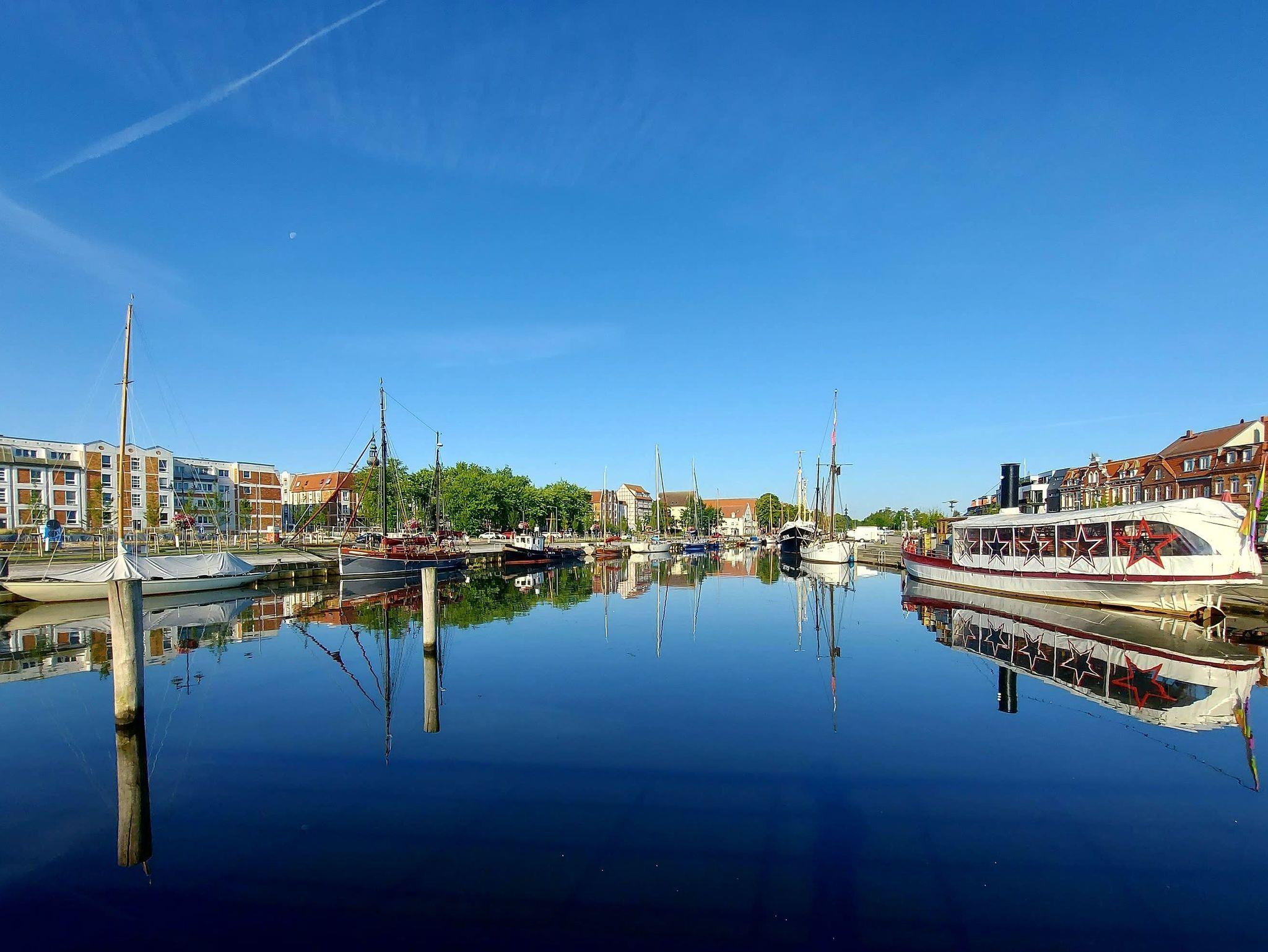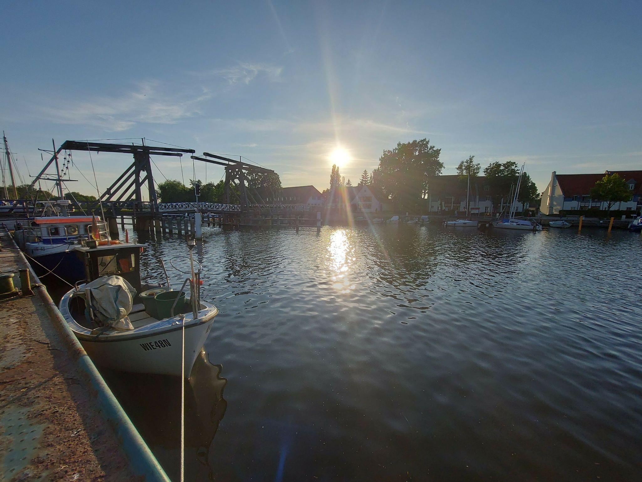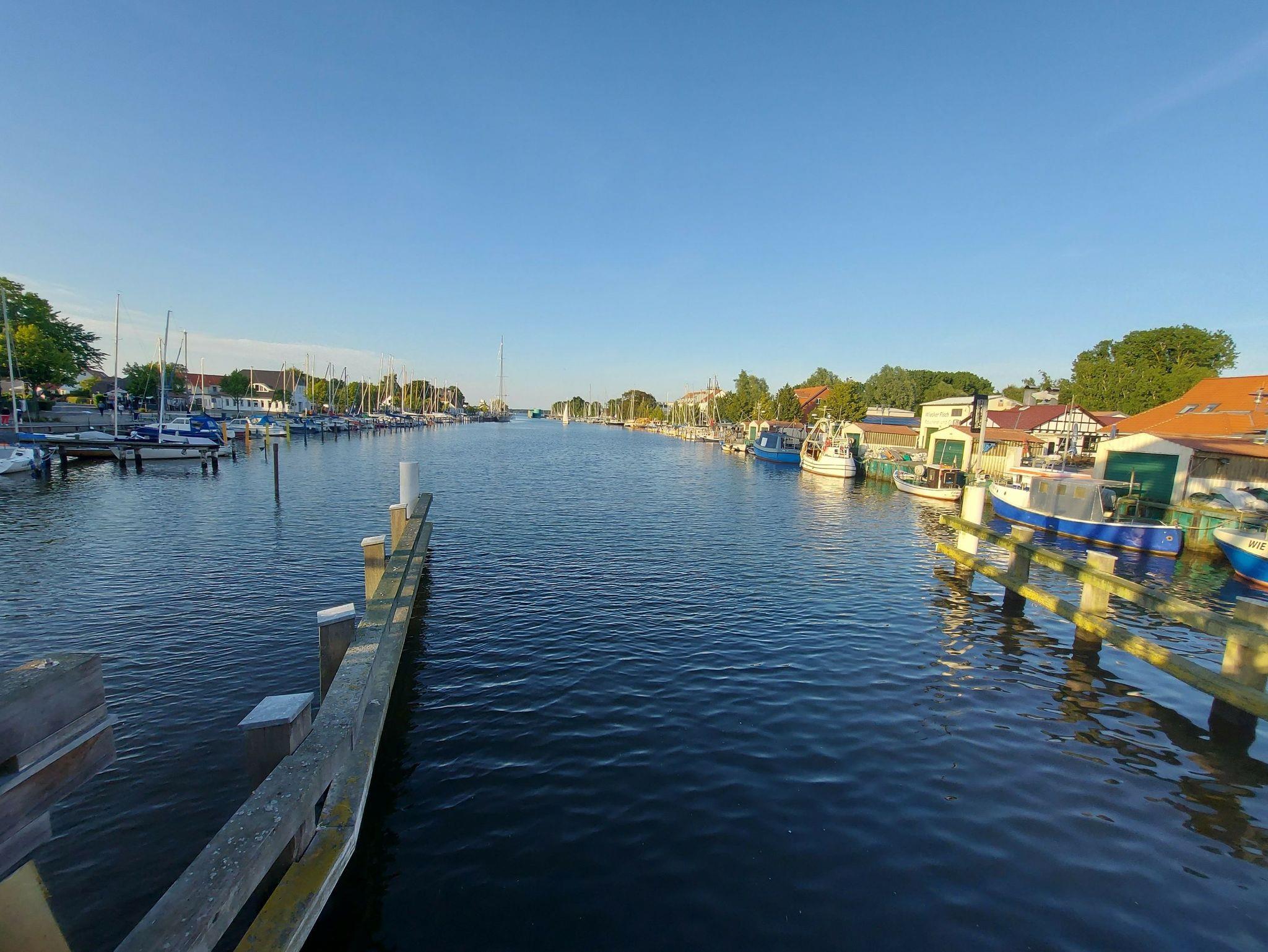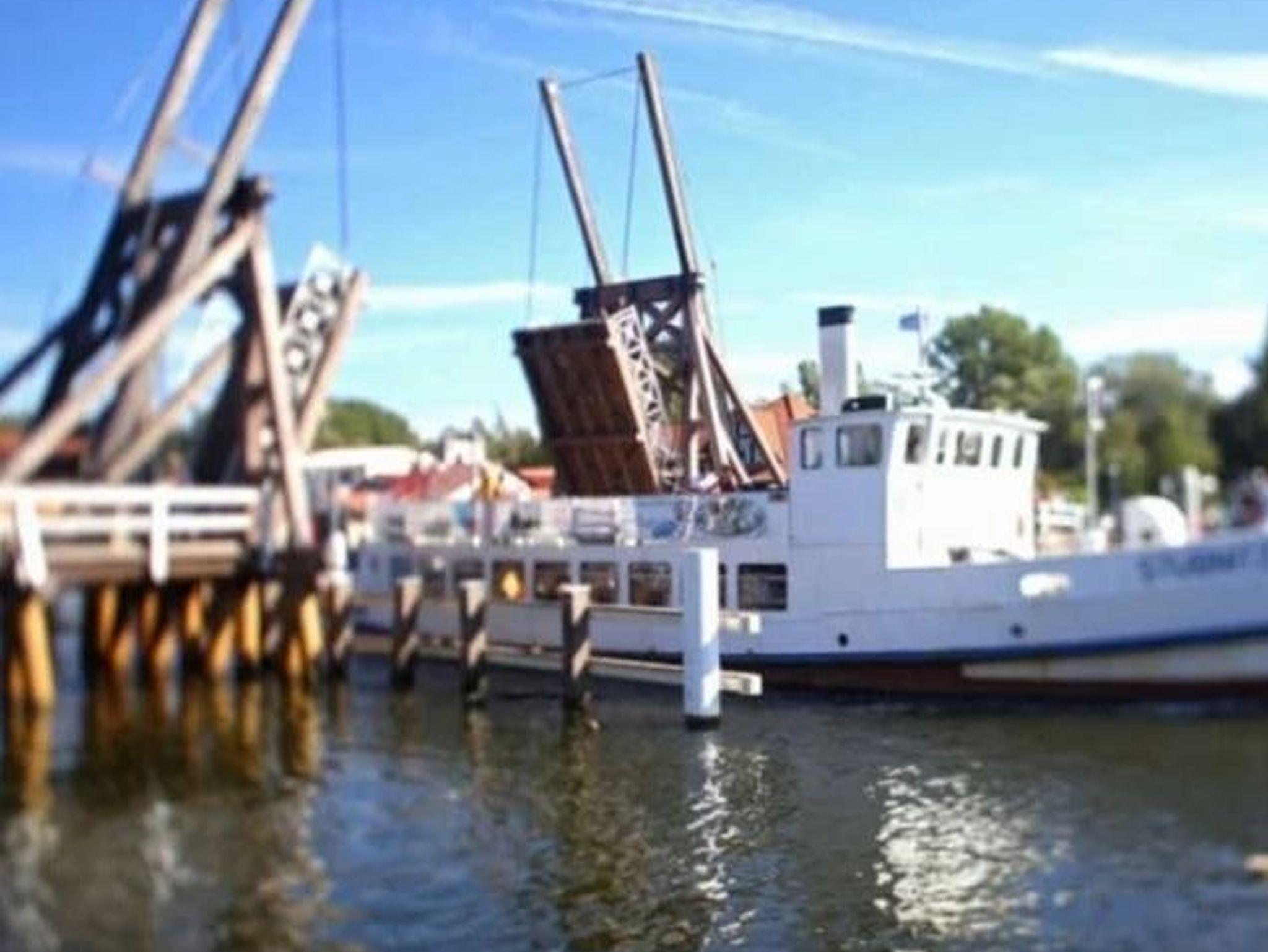 Da sich das Fischerdorf auf einer Halbinsel befindet, sind es in alle Richtungen vom Haus nur 150 - 200 Meter zum Wasser. Die einzigartige Wiecker Holzklappbrücke, welche bis heute voll funktionstütig ist, befindet sich 200 Meter vom Haus entfernt. Im Frühjahr und Sommer wird die Brücke täglich zu jeder vollen Stunde von den Brückenwärtern händisch geöffnet, um die zahlreichen Yachten, Segelboote und Traditionsboote aus dem größten Museumshafen Deutschlands in die offene See fahren zu lassen.