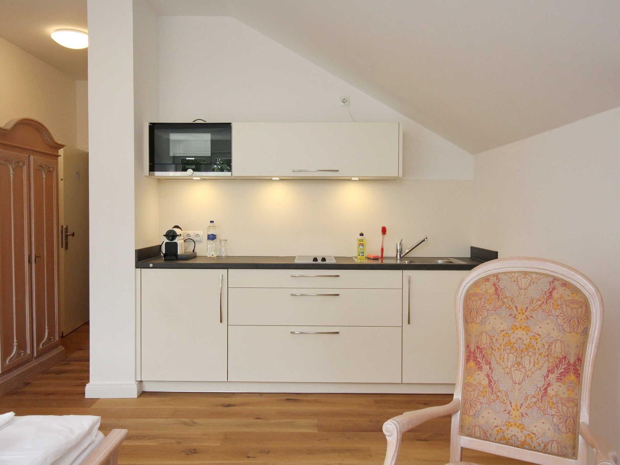 Die Schloss Studios liegen im 1. Stock oder im Dachgeschoss mit Blick in den vorderen oder hinteren Park. Alle Apartments sind mit dem Aufzug zu erreichen. Sie sind modern-minimal oder klassisch ausgestattet und verfügen über eine moderne Küche mit Nespresso Kapselkaffeemaschine und weiteren Küchenutensilien ..
