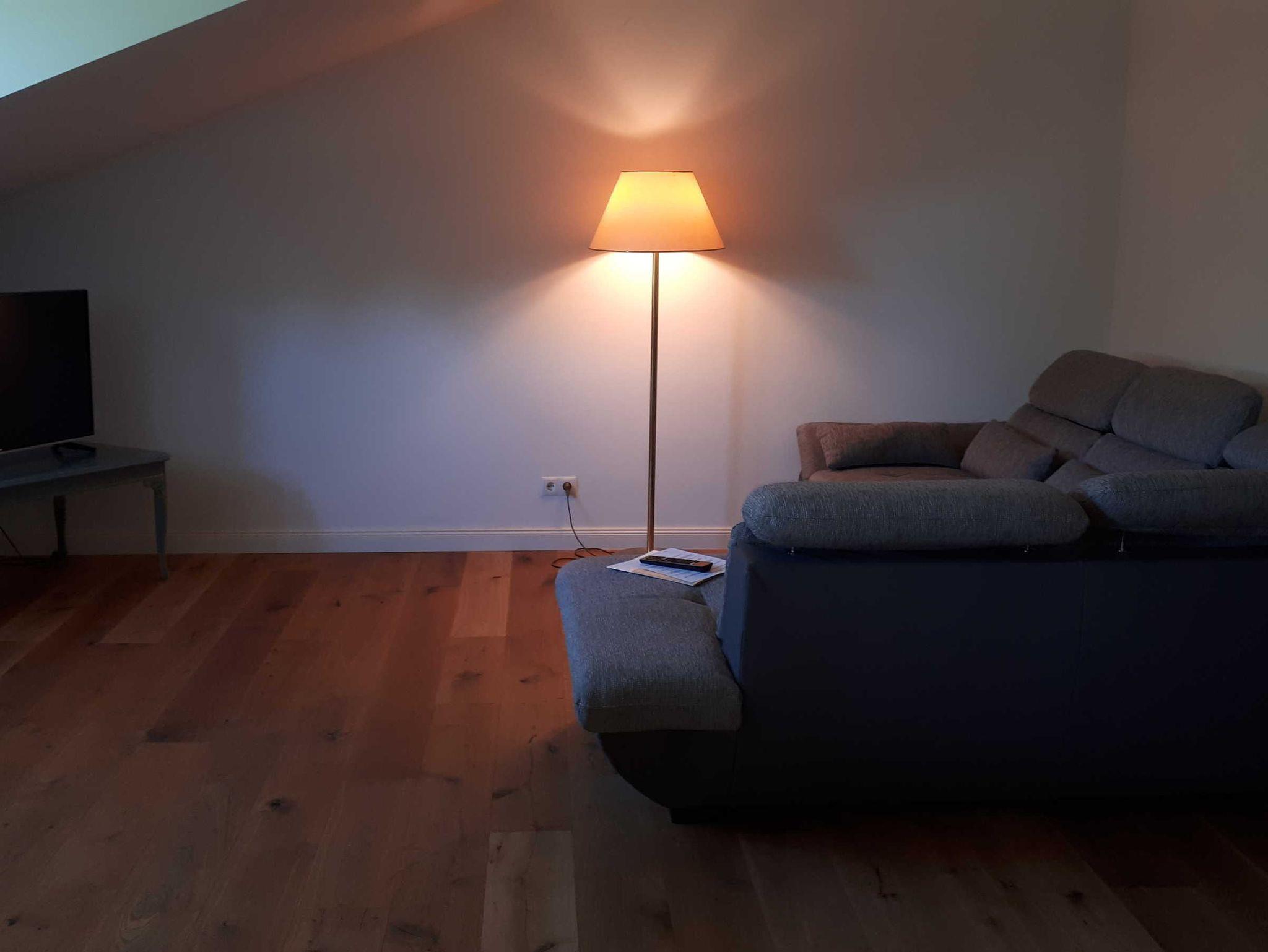 Die Schloss Superior Suite (60 m²) ist ein großzügig geschnittenes, modern eingerichtetes Apartment im Dachgeschoss mit separatem Schlafzimmer und großem Doppelbett (1,80 x 2,00).Das Wohnzimmer ist mit einer großen Schlafcouch (1,60 Meter breit), sowie einer hochwertigen, modernen Küchenzeile inklusive Geschirrspülmaschine, Nespresso Kaffeemaschine und weiteren Küchenutensilien ausgestattet. Die Wohnung verfügt über 2 neue, moderne Bäder mit bodentiefen Duschen.