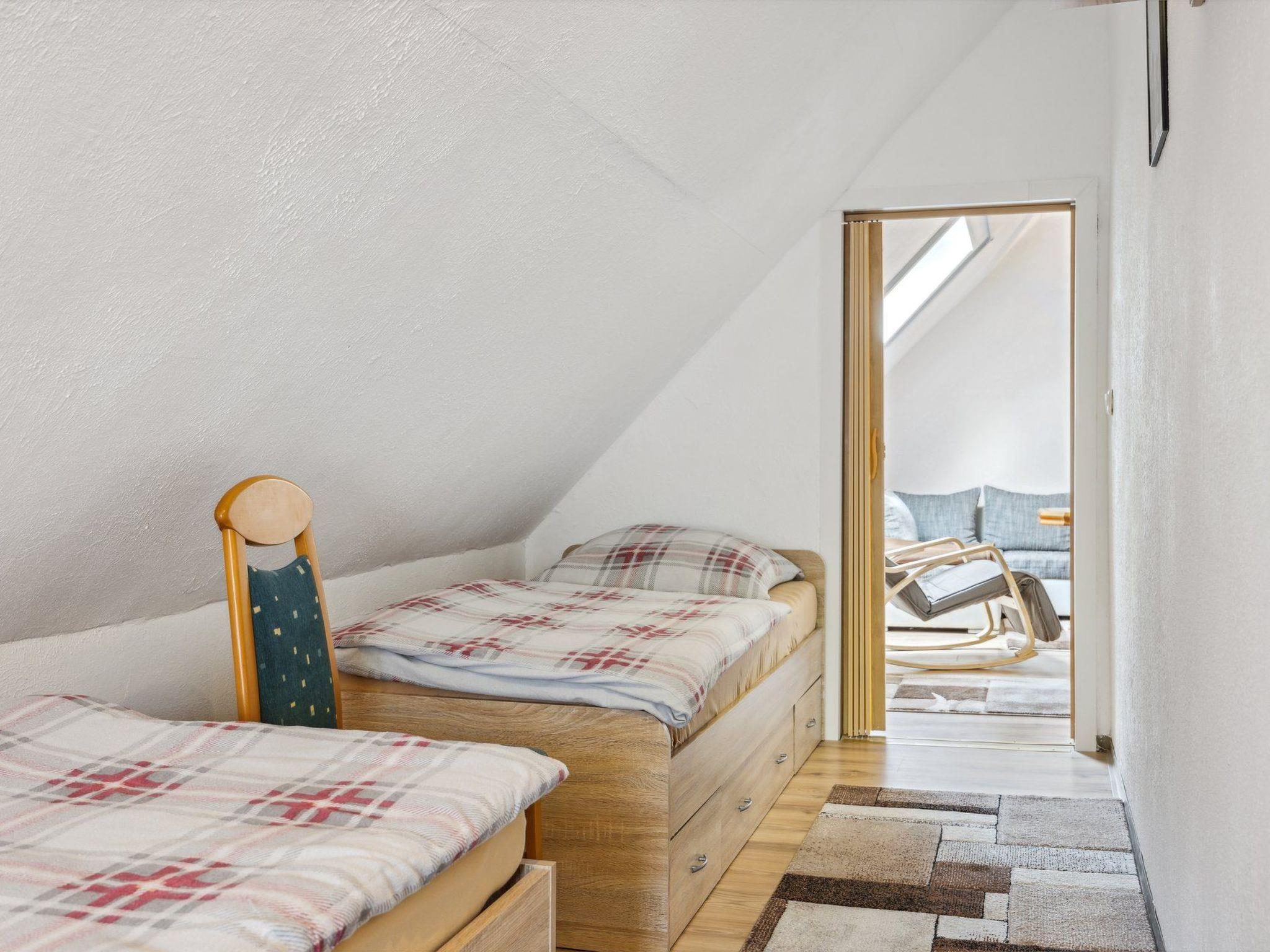 Die Innenausstattung lässt keine Wünsche offen: Ein einladender Wohnraum mit Polstermöbeln, Schlaffunktion, Flachbildfernseher, Radio und WLAN für entspannte Abende, eine voll ausgestattete Küche mit E-Herd, Ceranfeld, Backofen, Kühlschrank (ohne Tiefkühlfach), Mikrowelle und diversen weiteren Küchengeräten inklusive eines kleinen Gefrierschrankes. Für einen erholsamen Schlaf stehen Ihnen ein Schlafzimmer mit Doppelbett und Kachelofen sowie ein Kinder-/Gästezimmer mit Zwei 90x200 cm Betten zur Verfügung. Das Bad ist mit Dusche und WC ausgestattet, ganz zu schweigen von der wohligen Wärme der Zentralheizung.