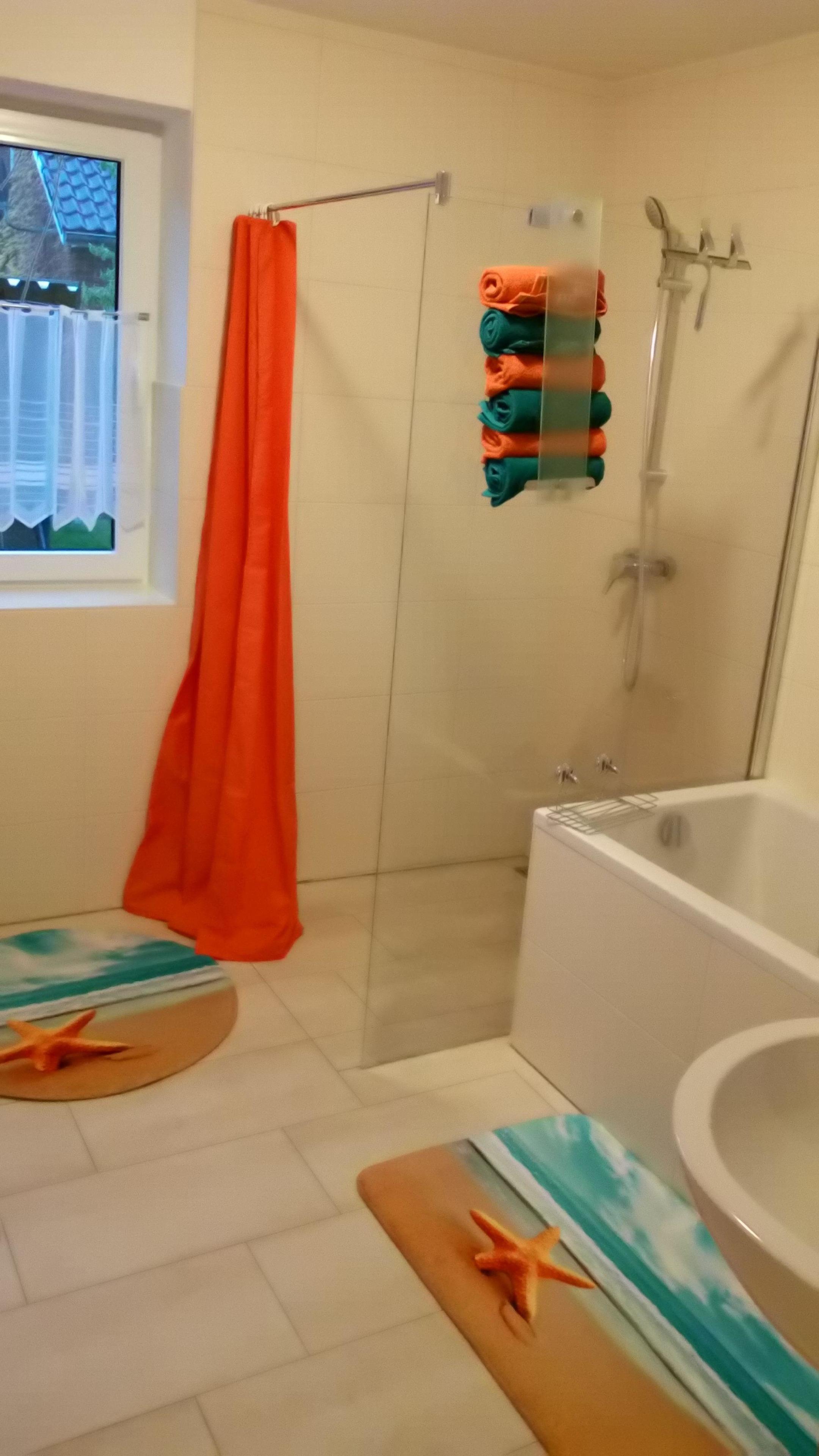 Die Ferienwohnung ist für 4 Personen ausgelegt, barrierearm, rollstuhlgeeignet und allergikerfreundlich. Im gesamten Haus sind die Fußböden gefliest und die ausgelegten Teppichbeläge können problemlos bei Bedarf entfernt werden. Die Wohnung ist mit einer Fußbodenheizung ausgestattet. Das Bad verfügt über Badewanne und Dusche. Die Dusche wie auch das gesamte Bad sind mit Rollstuhl befahrbar. Familien und Naturliebhaber werden sich hier sehr wohl fühlen. Senioren und Familien mit Kindern sind bei uns gleichermaßen willkommen.
