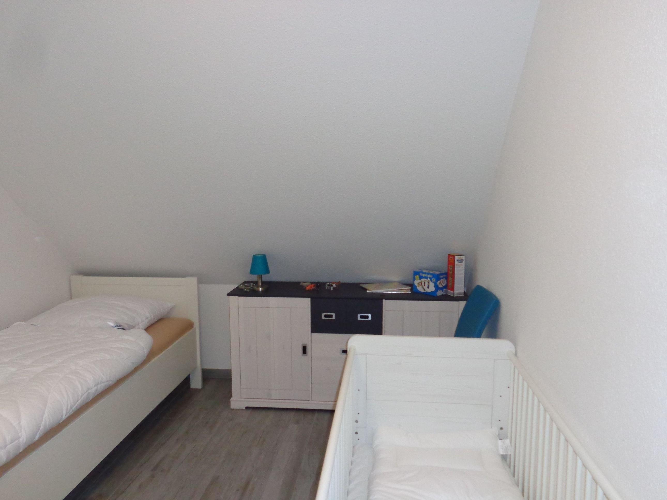 Die zwei vorhandenen Schlafzimmer sind mit 1 Doppel- und 2 Einzelbetten ausgestattet. Zusätzlich befindet sich in dem Schlafzimmer mit den Einzelbetten auch 1 Kleinkinderbett.
