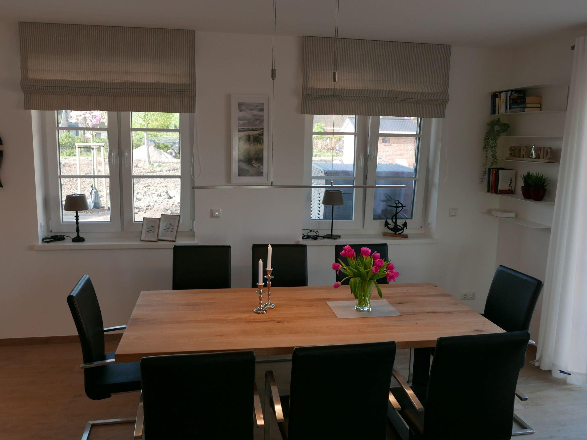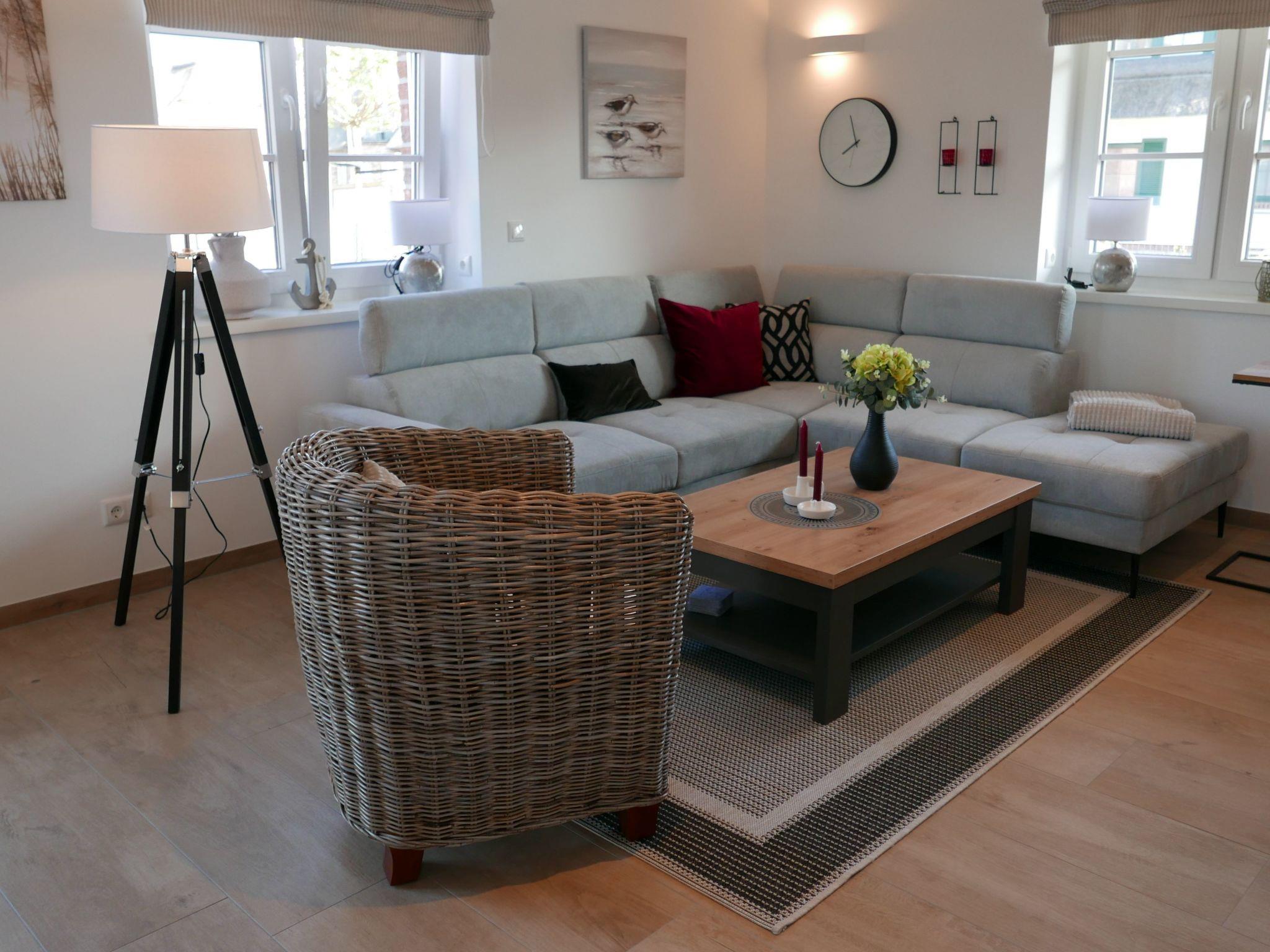 Im Inneren des 2024 erbauten Reethauses erwartet Sie eine auf zwei Etagen aufgeteilte Wohnfläche von rund 125 m² mit voll beheizbaren Räumen und einer angenehmen Fußbodenheizung in allen Bereichen. Die voll ausgestattete Küche mit Kochinsel lädt zum gemeinsamen Kochen ein und geht über in einen großzügigen Wohn- und Essbereich mit einem Kaminofen sowie moderner elektronischer Ausstattung inklusive eines 55 Zoll Smart TV. Drei individuell eingerichtete Schlafräume im Obergeschoss, zwei komfortable Badezimmer mit moderner Ausstattung sowie eine Sauna zur kostenfreien Nutzung komplettieren das luxuriöse Wohnambiente.