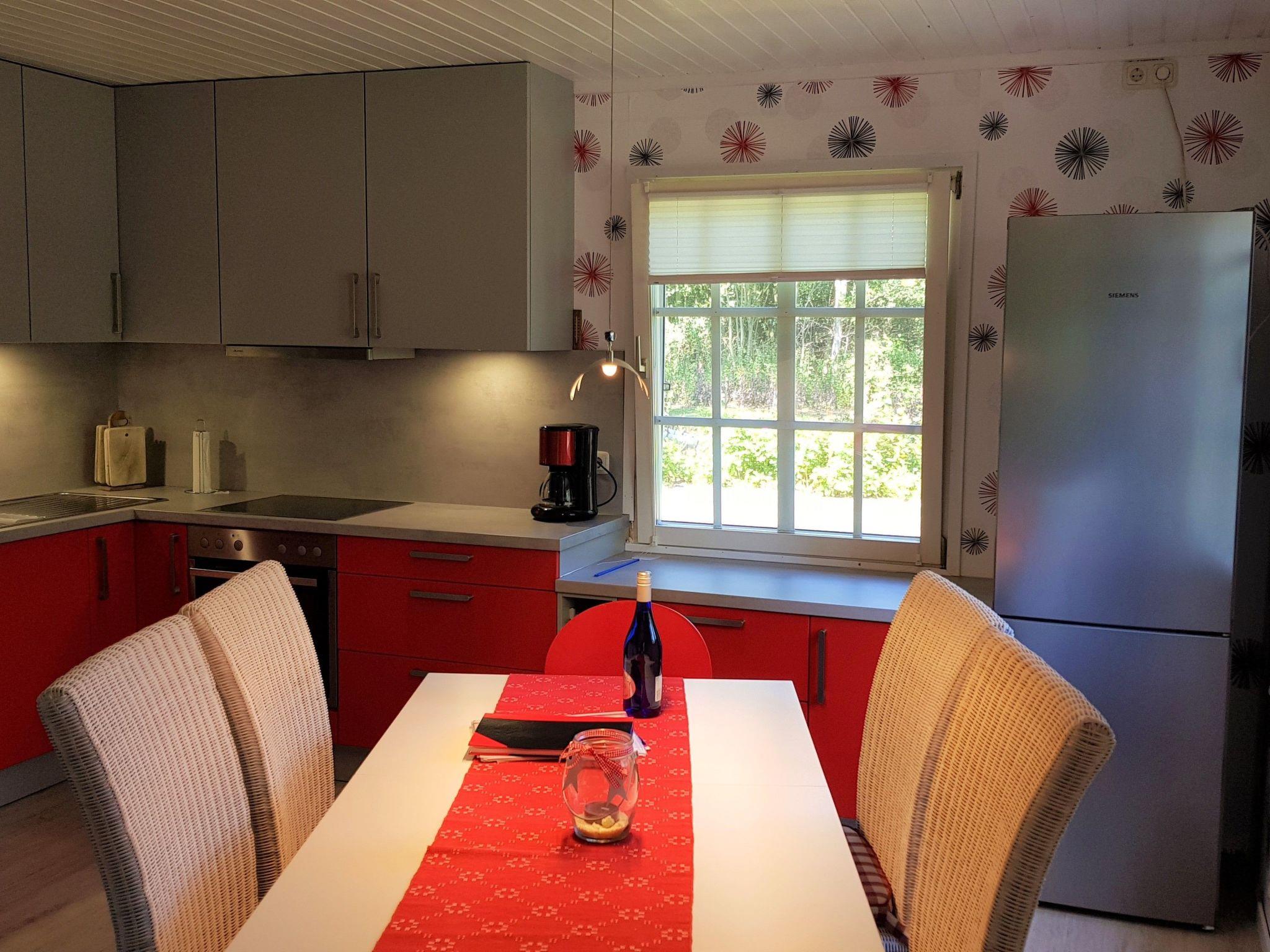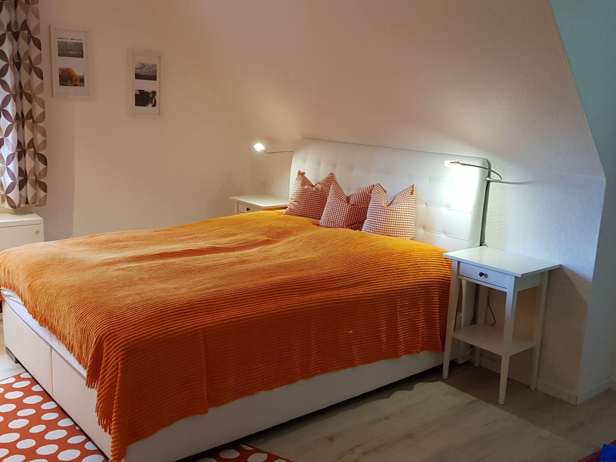 Es verfügt über drei Schlafzimmer. Das Schlafzimmer im Erdgeschoss ist mit zwei Einzelbetten (je 90 x 200 cm), sowie einem Gäste WC mit Waschgelegenheit ausgestattet. Die beiden anderen Schlafzimmer befinden sich im Obergeschoss. Es handelt sich dabei um einen großzügigen Schlafbereich mit einem Boxspringbett (160 X 200 cm), sowie einer gemütlichen Ledercouch. Das andere Schlafzimmer im Obergeschoss verfügt über ein gemütliches Doppelbett (140 x 200 cm) im französischen Stil. Über den angrenzenden Flur gelangt man in ein geräumiges Duschbad mit Waschbecken und WC. Im Erdgeschoss befindet sich die komplett ausgestattete Wohnküche, die mit allen notwendigen Geräten ausgestattet ist, um nicht nur kochen, sondern auch backen zu können. Wenn es schnell gehen muss, kann man auch die Mikrowelle benutzen. Nach dem Kochen übernimmt die Spülmaschine die restliche Arbeit, damit einem entspannten Essen nichts mehr im Wege steht. Aber auch das Frühstück kann gut beginnen, dafür sorgen die Kaffeemaschine, der Toaster und der Wasserkocher. Da der Kühlschrank auch über ein Gefrierfach verfügt, können Lebensmittel während Ihres Aufenthaltes optimal aufbewahrt werden. Direkt an die Küche schließt sich das Wohnzimmer an. Dort findet man moderne Unterhaltungselektronik und ein Ledersofa. In allen Räumen gibt es eine Heizung, so dass es auch bei schlechtem oder kaltem Wetter immer schön warm ist.