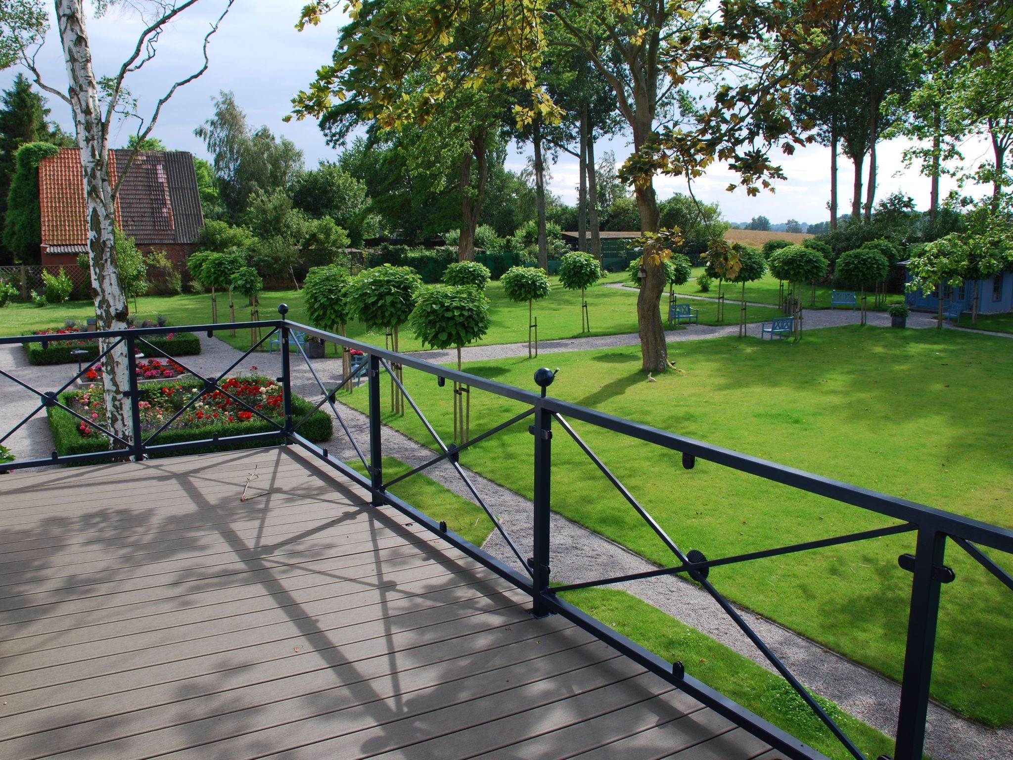 Auf der 16 qm großen Terrasse mit Tisch und diversen Gartensesseln hat man ab mittags bis zum Sonnenuntergang die Sonnenseite pur und einen bezaubernden Blick auf den parkähnlichen Garten und über weite Felder und Wiesen.