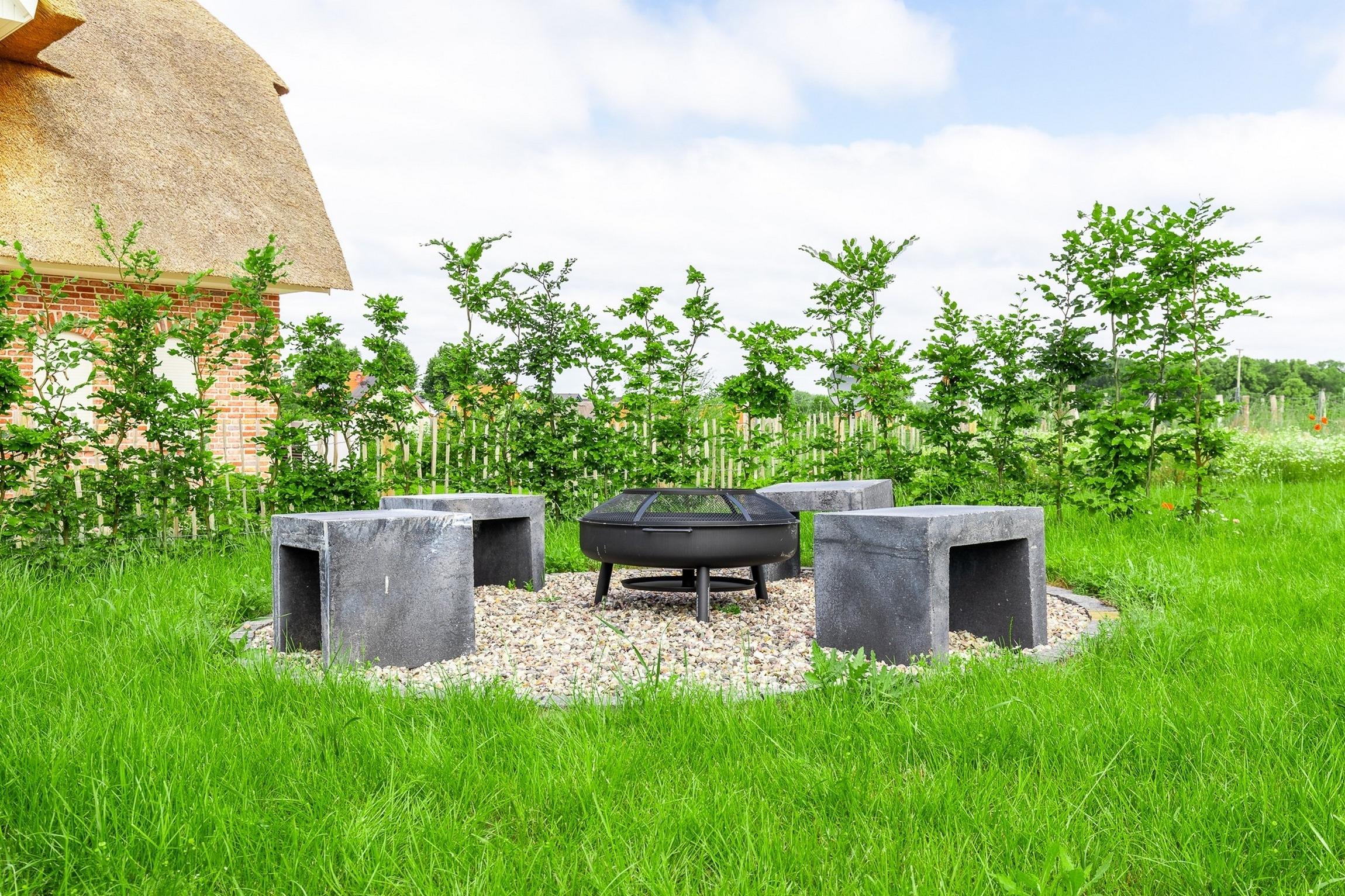 An die großzügige möblierte Eckterrasse grenzt ein gepflegtes Grundstück mit viel Grün drumherum.