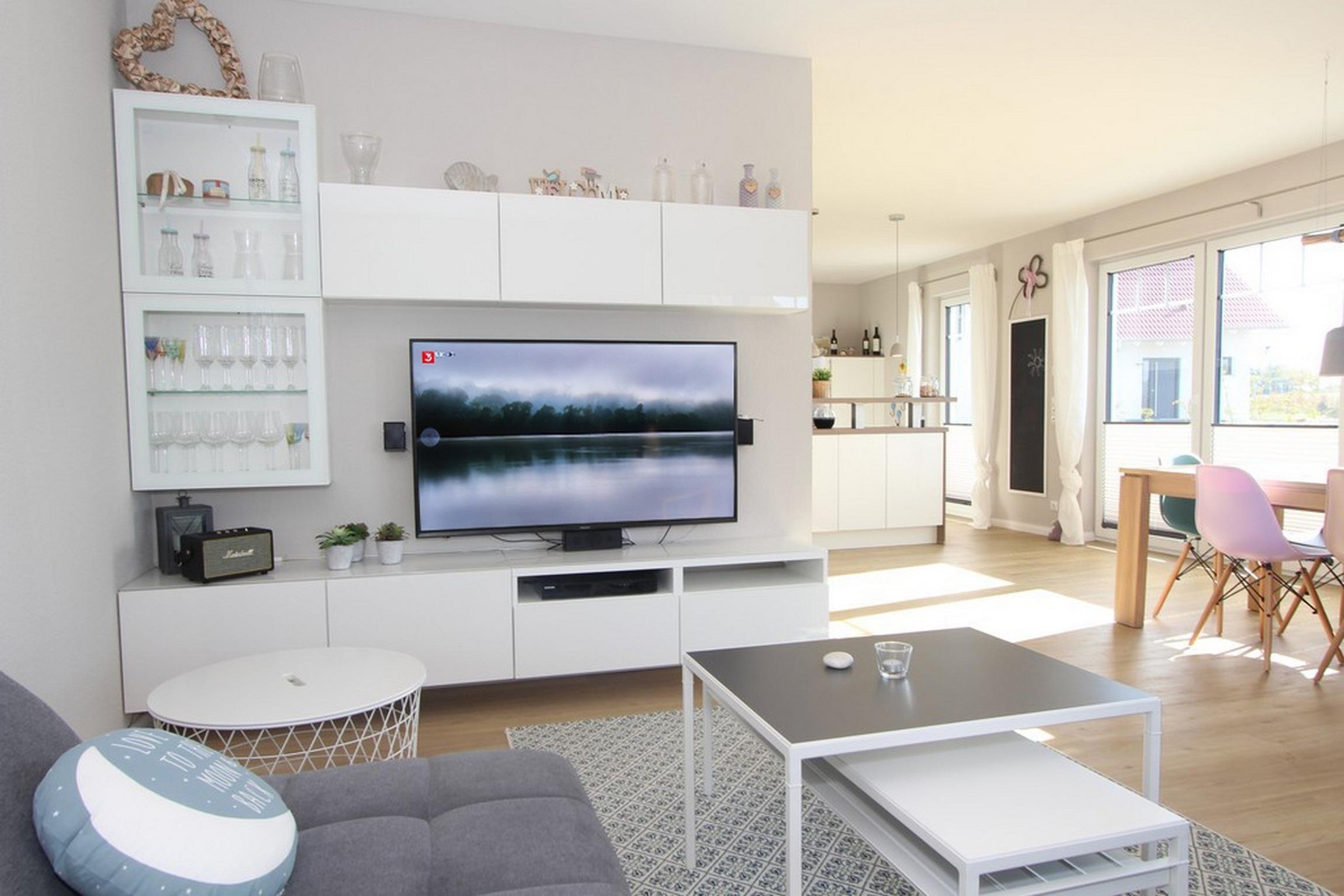 Helle Farben und Grautöne verleihen schon beim Eintreten in unser 5-Zimmer-Ferienhaus „Fine“ eine gewisse Leichtigkeit. Eine optimale und großzügige Raumaufteilung sorgen auf rund 150qm Wohnfläche für den Wohlfühleffekt und bieten eine hervorragende Ausstattung für bis zu 8 Gästen.
