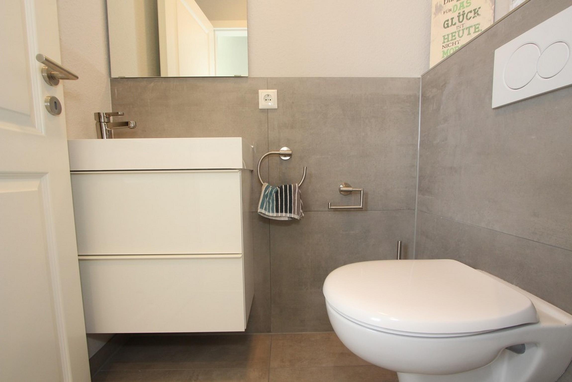Ferner finden Sie auf dieser Etage das große Vollbad, wieder mit bodengleicher Dusche und Doppelwaschtisch sowie mit integrierter Infrarotwärmekabine.