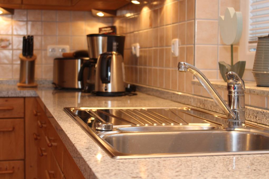 Die separate Küche aus echtem Holz bietet eine gehobene Küchenausstattung und umfasst einen Herd mit Backofen, einen Kühlschrank mit Gefrierfach, eine Spülmaschine, eine Mikrowelle, einen Mixer, einen Toaster, einen Wasserkocher sowie eine Kaffeemaschine – alles, was für einen komfortablen Urlaub benötigt wird. Darüber hinaus gibt es in der Küche einen Essbereich.