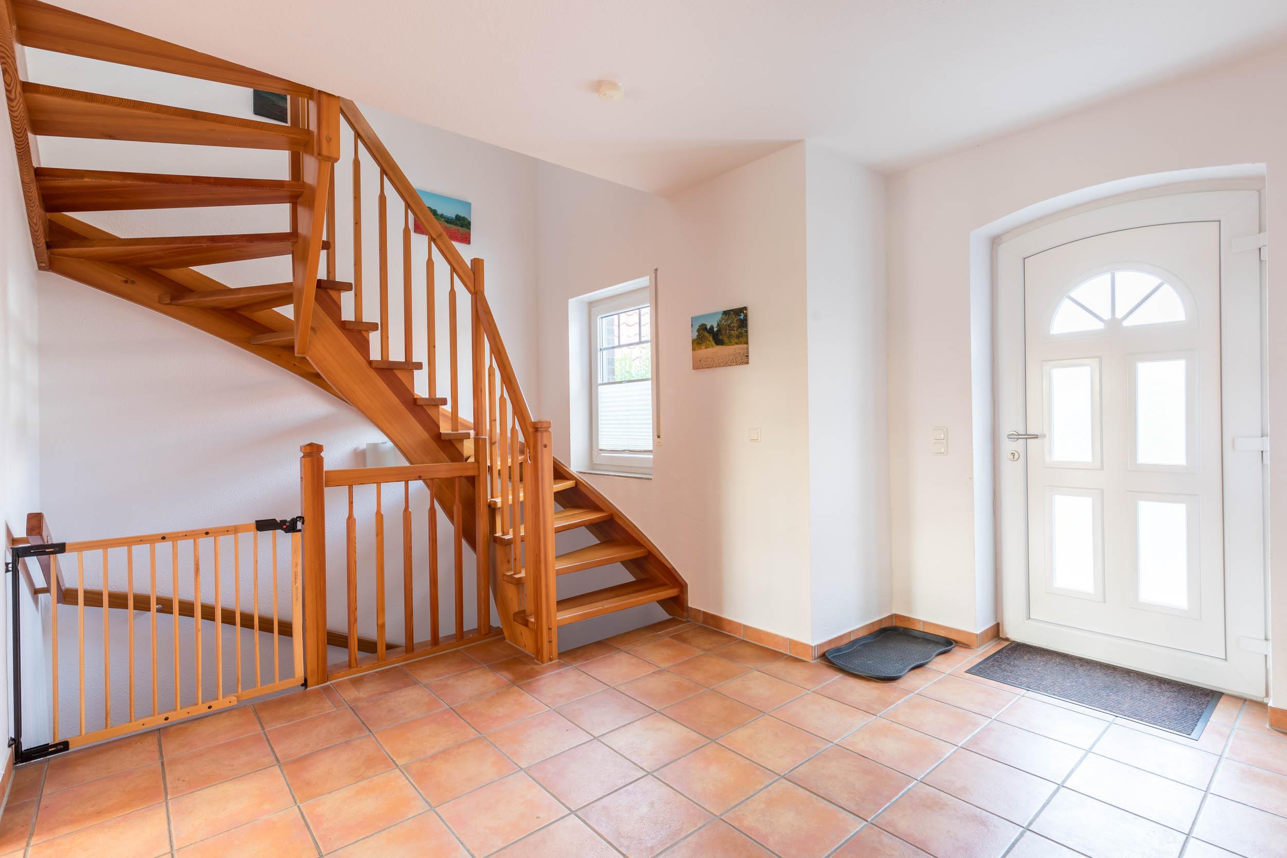 Des Weiteren befinden sich im Erdgeschoss eine Diele mit einer Kommode und eine Garderobe sowie ein Gäste-WC.
