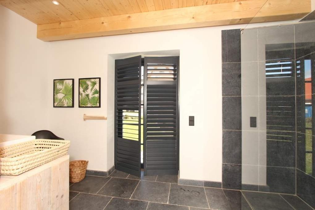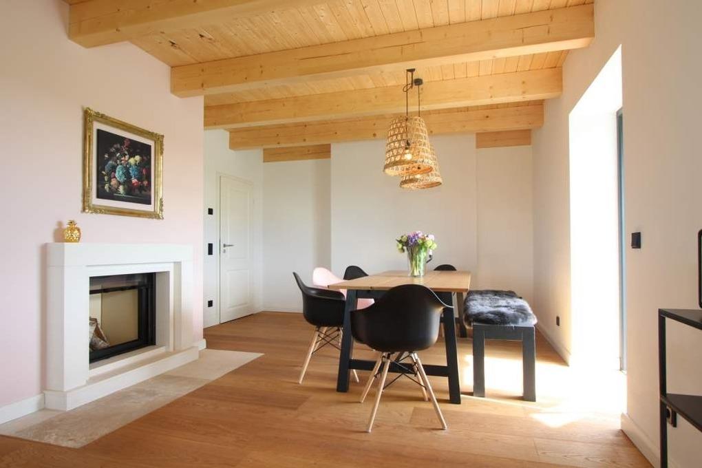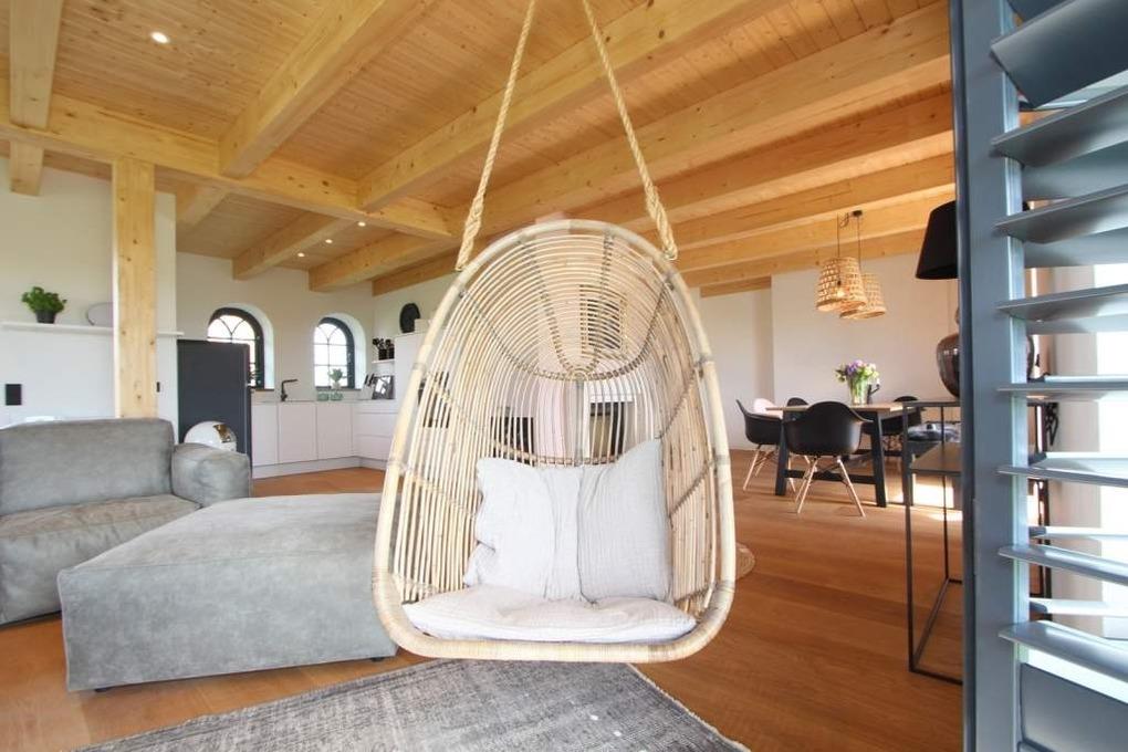 Die vielen und großen Fensterelemente sorgen für viel Licht und ein tolles Raumgefühl. Der Blick ins Grüne lässt Urlaubsfreude aufkommen. Zeitlose Klassiker mit modernem Twist erwarten Sie im gesamten Haus.