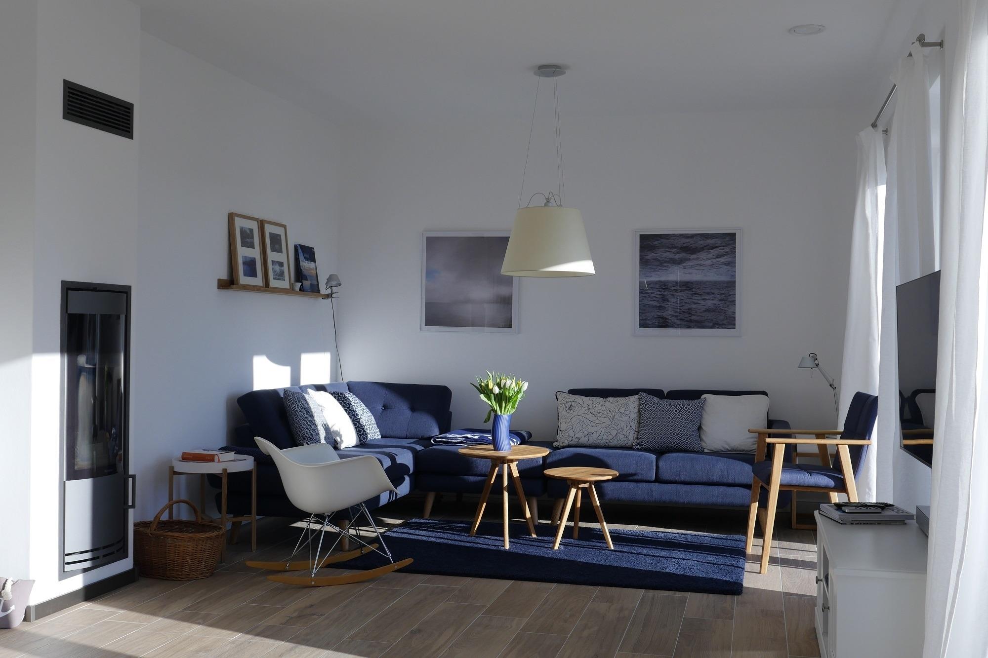 Bereits beim Betreten der geräumigen Eingangsdiele mit Garderobe, gemütlicher Friesenbank, großem Spiegel und schöner Massivholztreppe können Sie sich in charmanter Urlaubsatmosphäre wohlfühlen. Besonders großzügig und komfortabel ist der sich auf 50m² erstreckende lichtdurchflutete Wohn-Essbereich mit angrenzendem Bartresen und moderner offener Küche gestaltet. Von der Sofalandschaft und den beiden Sesseln aus kann man entspannt dem Feuer im Kamin zuschauen oder den Blick zum nahegelegenen Teich und über die Felder schweifen lassen. Auch vom Esstisch in massiver Eiche mit gepolsterten Stühlen sieht man auf Findlinge in eiszeitlich geprägter Landschaft.