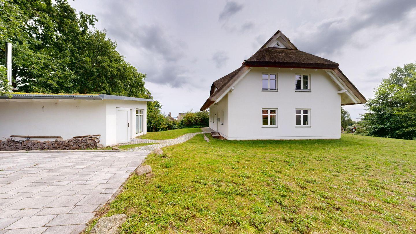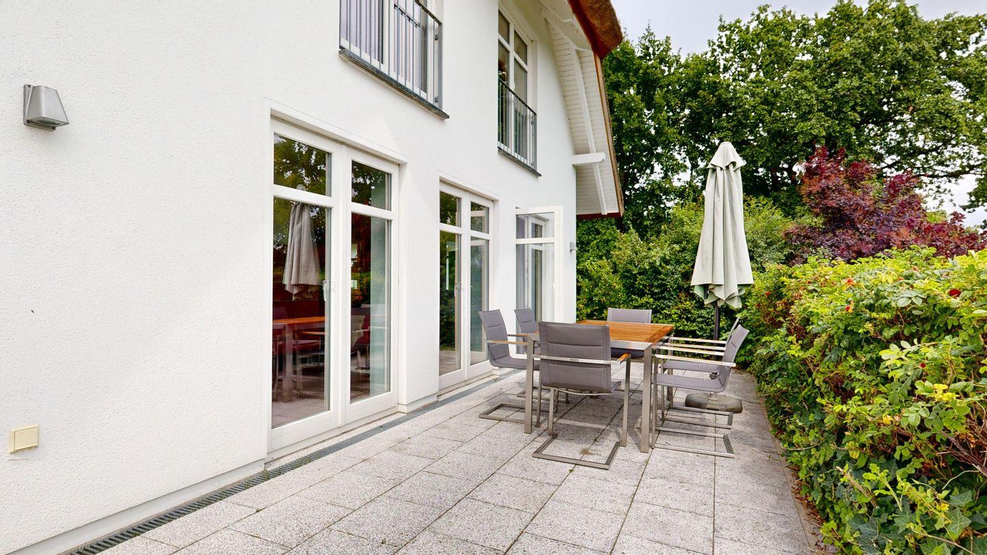 Eines der schönsten Domizile auf Rügen: In ruhiger Lage mit direktem Meerblick, großer Süd-Terrasse mit Strandkorb und einem weitläufigen 2.500 m² Grundstück mit Gartengrill und separatem Saunahäuschen bietet dieses exklusive Haus luxuriöses Wohnen inmitten unberührter Natur.