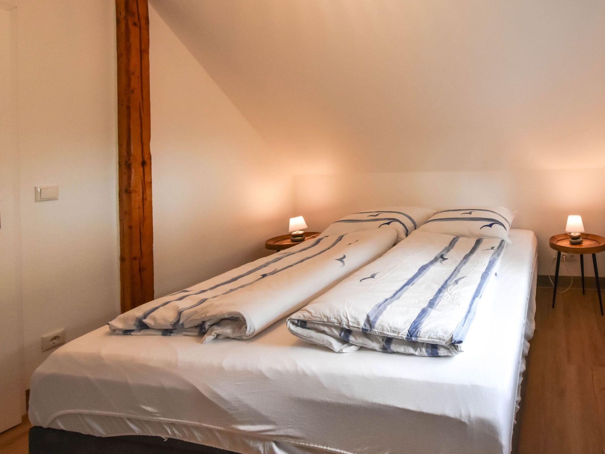 Im 1. Obergeschoss eines ansprechenden Fachwerkhauses gelegen, bietet diese Ferienwohnung alles, was Sie für einen komfortablen Aufenthalt benötigen. Neben einem gemütlichen Wohn- und Essbereich mit Küchenzeile, die für kulinarische Selbstversorger gut ausgestattet ist, finden Sie ein einladendes Schlafzimmer. Ein Boxspringbett verspricht erholsame Nächte, während der Schwebetürenschrank genügend Stauraum für Ihr Gepäck bietet. Das Badezimmer ist funktional mit einer Dusche versehen, um Ihnen einen angenehmen Aufenthalt zu gewährleisten.