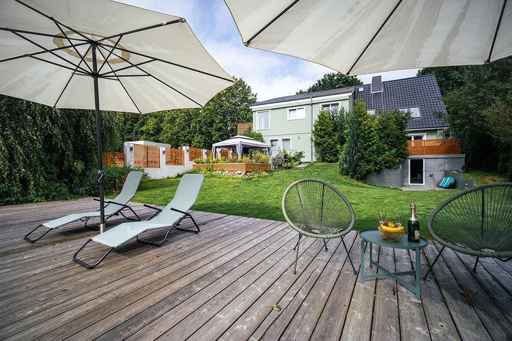 Aus der seegewandten Hausseite kann man den Wittensee beobachten und es sich direkt auf einem der beiden Balkone oder auf einer der beiden Terrassen im Garten gemütlich machen.