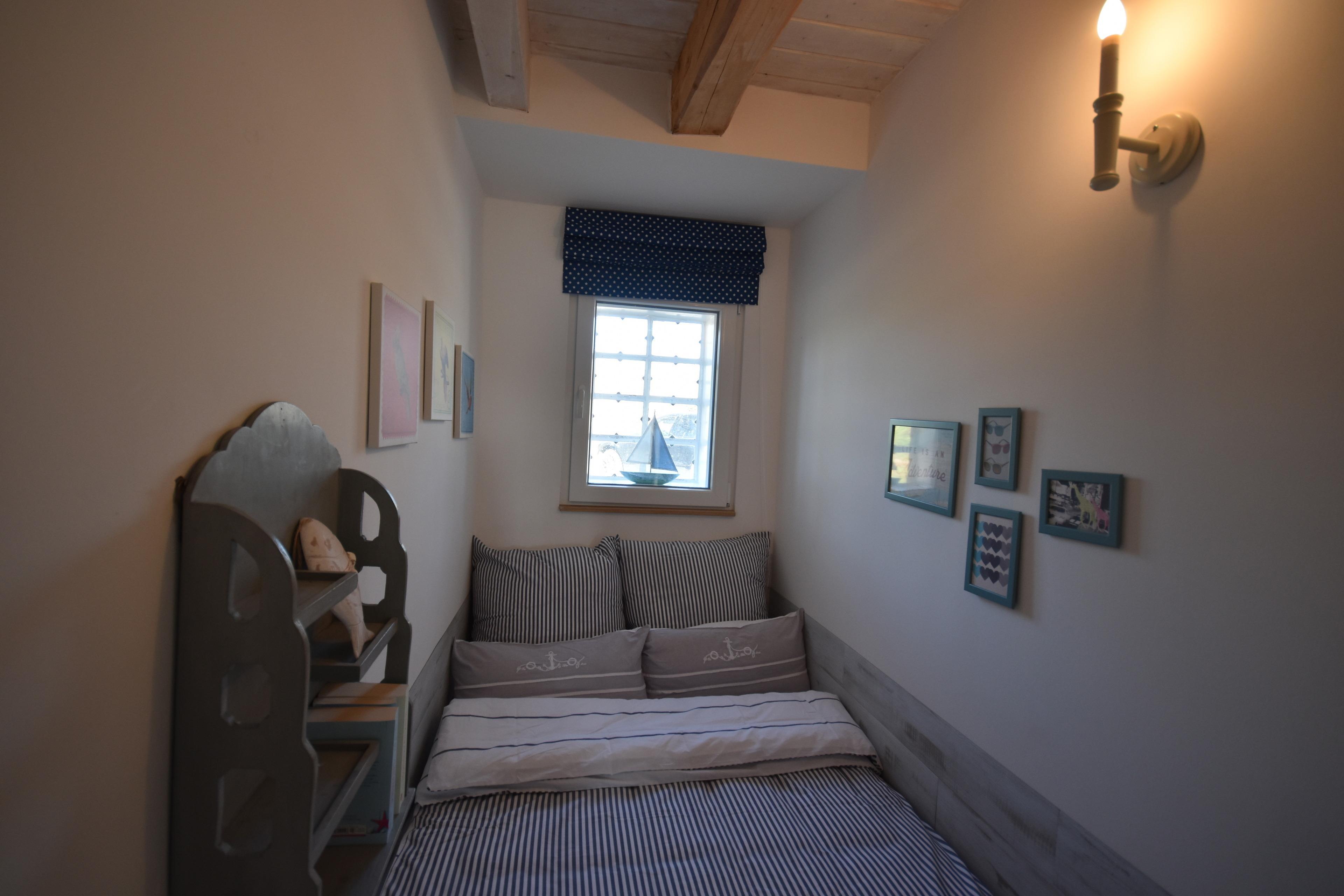 Ihr Feriendomizil liegt im Erdgeschoß und hat mit seinen alten Holzbalken und der Einrichtung im maritim-nordischen Stil eine besondere Atmosphäre. Es verfügt über allen Komfort. Der großzügige Eingangsbereich und das sehr sonnige Wohnzimmer mit 2 Terrassentüren, offener Küche und Essplatz mit Blick erwartet Sie. Im Schlafzimmer finden Sie komfortable Doppelbetten (1,80 x 2m), Verdunklungsrollos und einen zusätzlichen Flachbildfernseher. Für einen entspannten Schlaf stehen auch verschieden Kopfkissen ( 80 x 80 und 40 x 80)zur Auswahl ! Im kleinen, gemütlichen " Kojenzimmer" findet sich ein weiteres kleines Doppelbett (1,30 x 2 m) für bis zu 2 Kinder oder einen Erwachsenen.