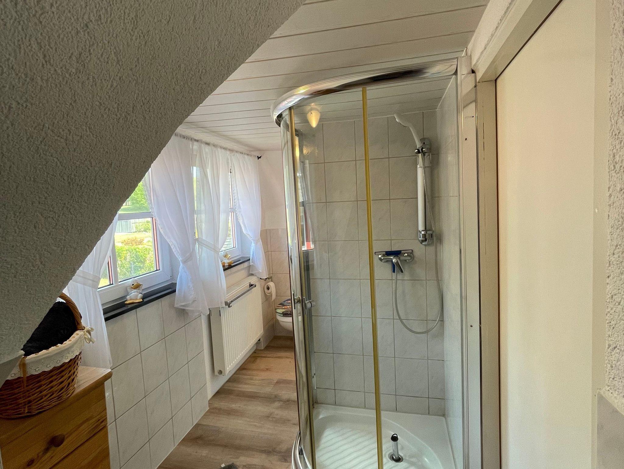 Die gemütliche Ferienwohnung (Nichtraucher) bietet mit seinen ca. 34 qm ausreichend Platz für 2-3 Personen. Der Wohnbereich umfasst eine gemütliche Couchecke (Aufbettung für 3.Person) mit Couchtisch ein Sideboard mit Radio und TV-Gerät. Die angrenzende Einbauküchenzeile mit Essecke bietet Ihnen ein 4 Platten-Herd, Abzugshaube, kleinen Backofen, Spüle, Kaffeemaschine, Wasserkocher, Toaster sowie diverse Küchenutensilien. Das Schlafzimmer verfügt über ein Doppelbett mit Nachtischkonsolen und einen Kleiderschrank. Das geflieste Tageslichtbad verfügt über eine Dusche, WC, Waschtisch und einen Fön. WLAN inkluisve. Die bestuhlte Gemeinschaftsterrasse lädt zum Verweilen ein. Das separate und gemütliche Blockhaus auf dem Grundstück der Vermieter, steht allen Gästen der Pension zur Verfügung. Ein gemütlicher Grillabend findet in der Saison 1 x wöchentlich zusammen mit dem Vermieter statt. Genauere Informationen erhalten Sie vor Ort. Auf Anfrage können Sie vor Ort ebenfalls den Brötchenservice in Anspruch nehmen sowie das Frühstück p.P. für 7,00 Euro dazu buchen. Bis 14 Tage vor Anreise können Sie die Erstausstattung eines Wäschepaketes für 6,00 Euro p.P. dazu buchen bzw. durch eigene ergänzen. Haustiere sind nicht erlaubt.