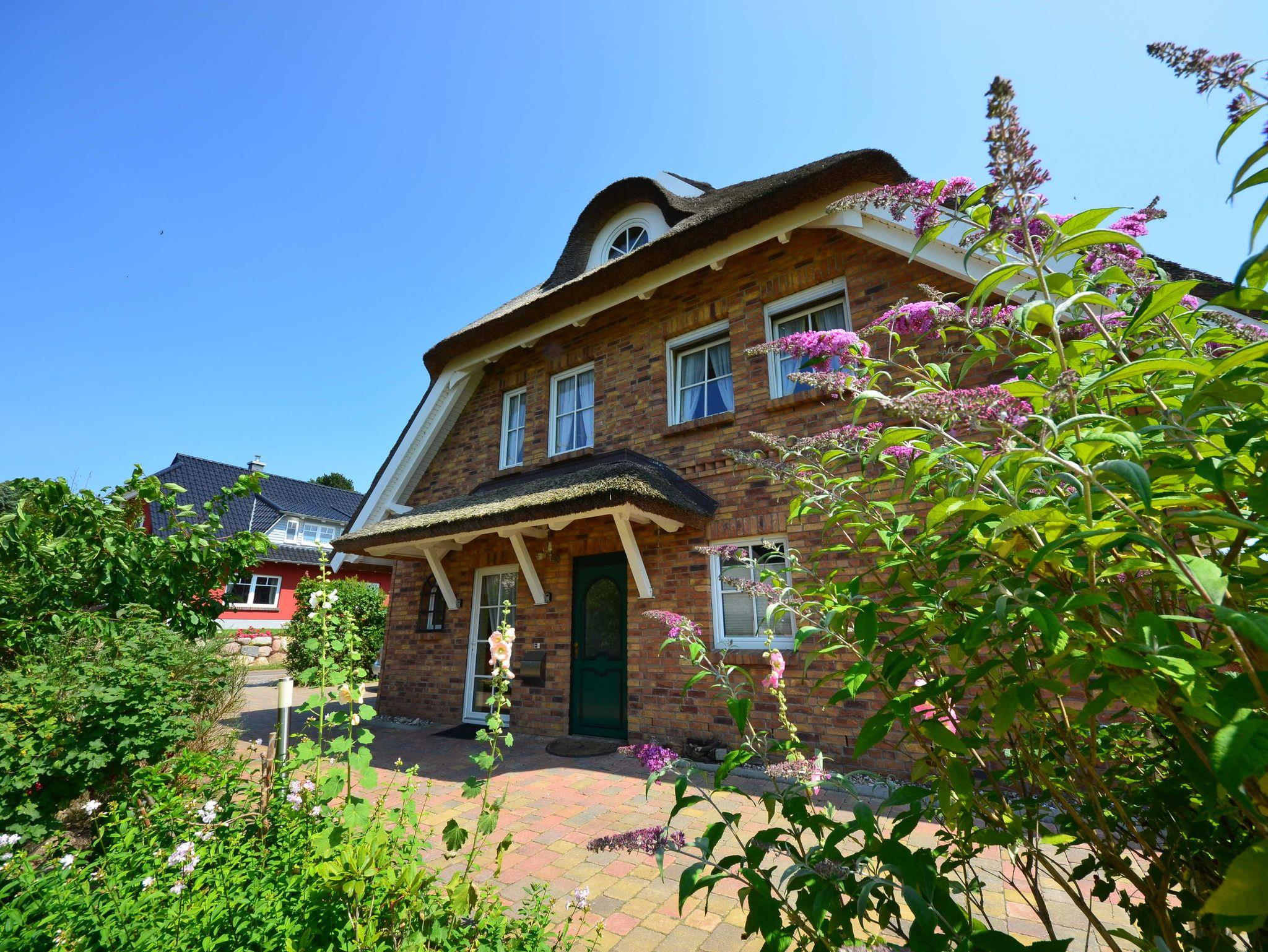 Die reetgedeckte und verklinkerte Doppelhaushälfte liegt in der Erste Reihe.
